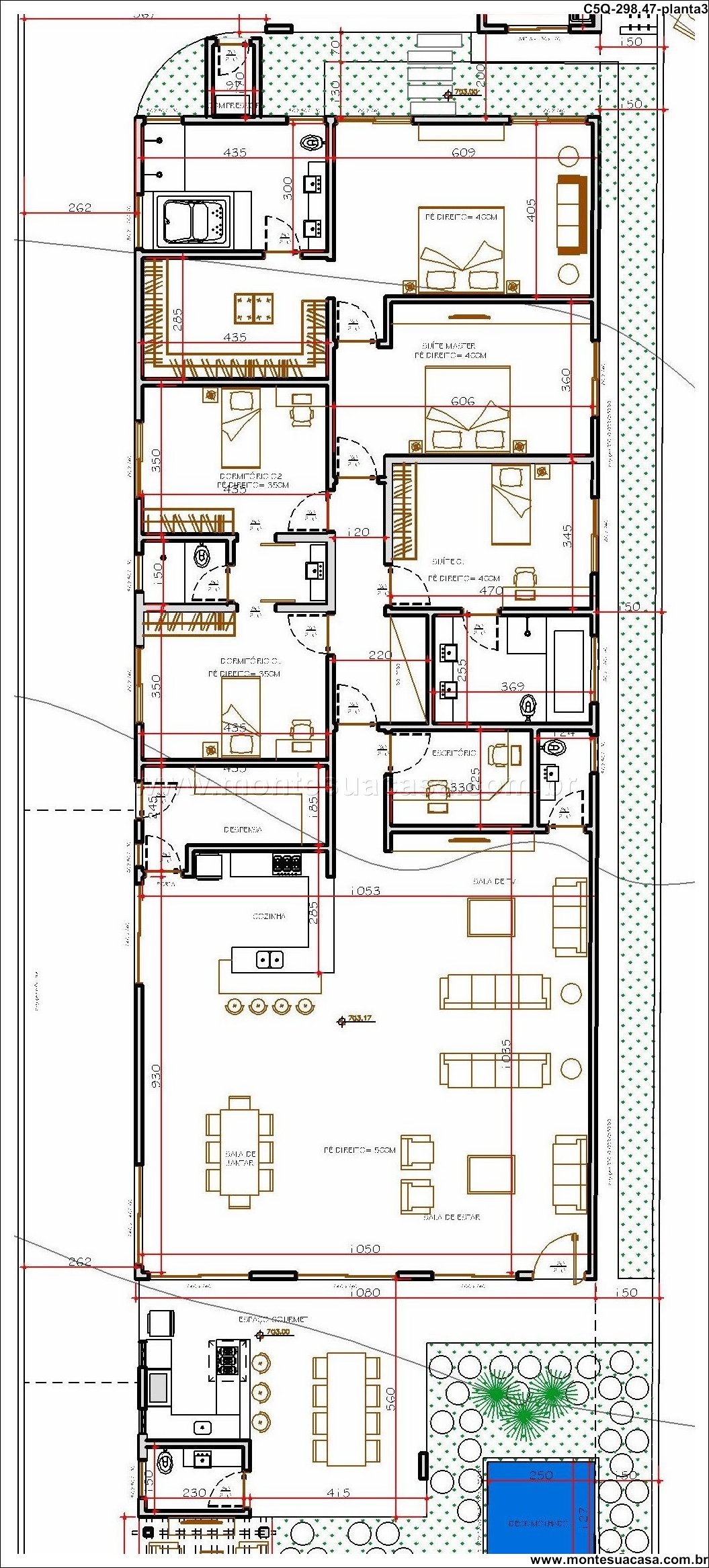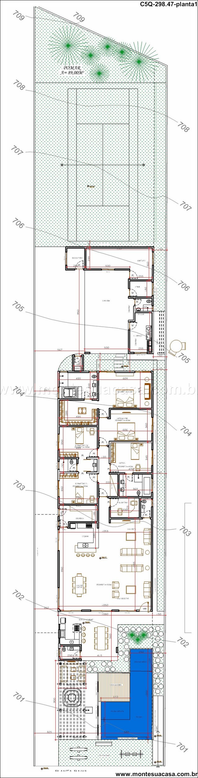 A área social ocupa posição privilegiada no projeto, com amplo living integrado à área gourmet e varanda de uso diário. Os cinco quartos, sendo três suítes, oferecem flexibilidade para famílias modernas, com espaços bem dimensionados e iluminação cuidadosamente planejada. A suíte master aproveita a localização mais alta do terreno para proporcionar maior privacidade e vistas panorâmicas. Os materiais escolhidos combinam durabilidade e sofisticação, criando ambientes aconchegantes que requerem pouca manutenção ao longo do tempo.