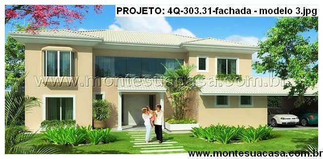 Projeto residencial moderno com fachada imponente Este projeto de 303,31m² apresenta uma residência sobrado com quatro quartos, ideal para famílias que valorizam conforto, estética e funcionalidade. A fachada se destaca pelo equilíbrio entre elementos clássicos e contemporâneos, com colunas brancas, janelas amplas e uma entrada central marcada por um arco elegante. O uso de cores suaves, como o amarelo claro e o terracota, harmoniza com o paisagismo tropical, criando uma atmosfera acolhedora e sofisticada.