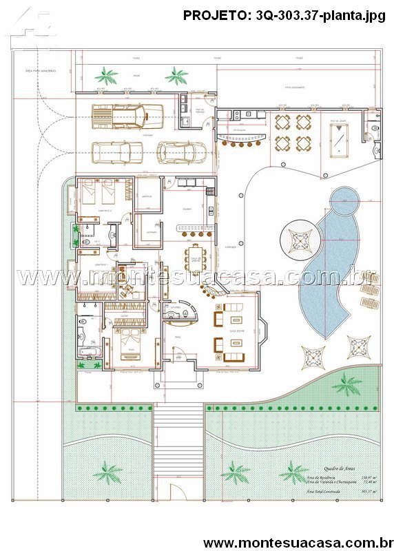Projeto Residencial 3 Quartos: Conforto e Funcionalidade em 303.37m²