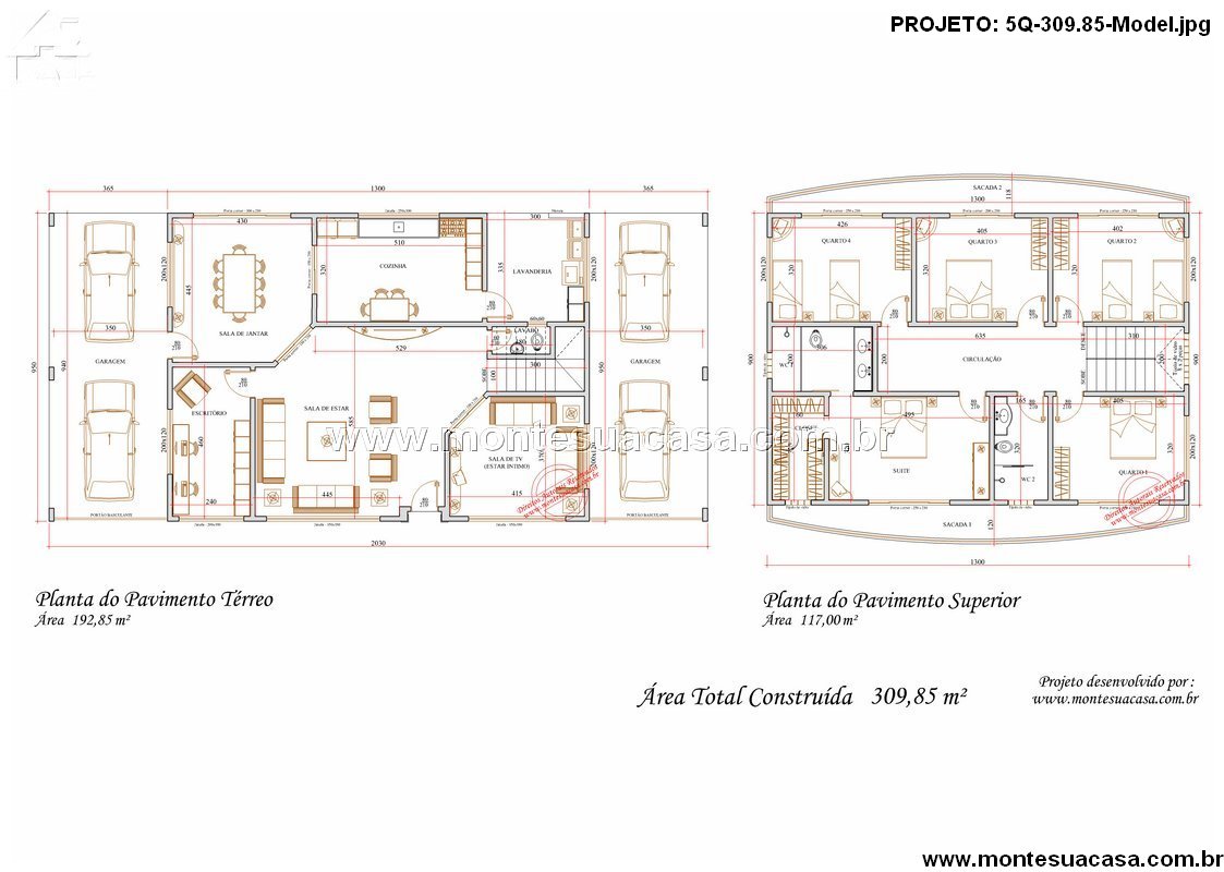 Este sobrado de 309,85 m² apresenta uma organização espacial ampla e direta, sem desperdício de metragem. A distribuição evidencia uma proposta funcional para famílias grandes, que buscam circulação eficiente e ambientes bem definidos. A fachada curva do pavimento superior reforça presença arquitetônica, enquanto o térreo combina espaços sociais generosos com áreas de uso diário bem posicionadas.
