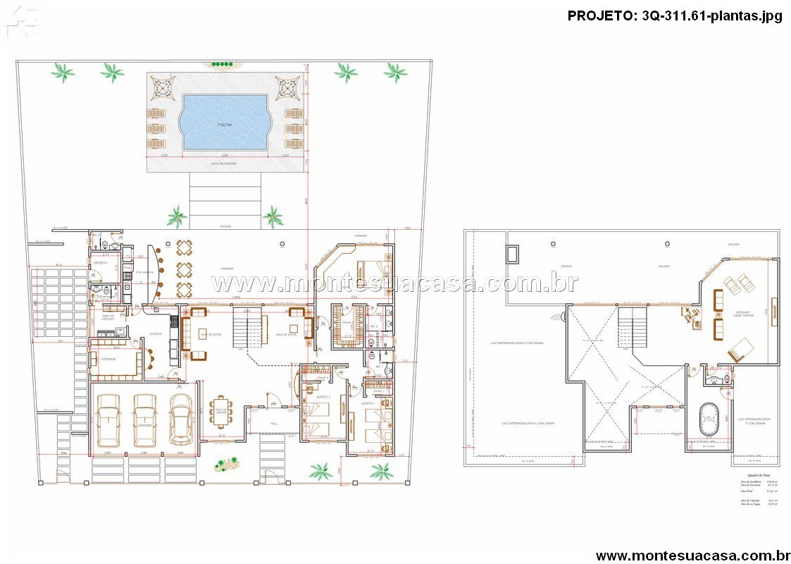 Projeto Arquitetônico Completo: Planta e Fachada de Residência Contemporânea