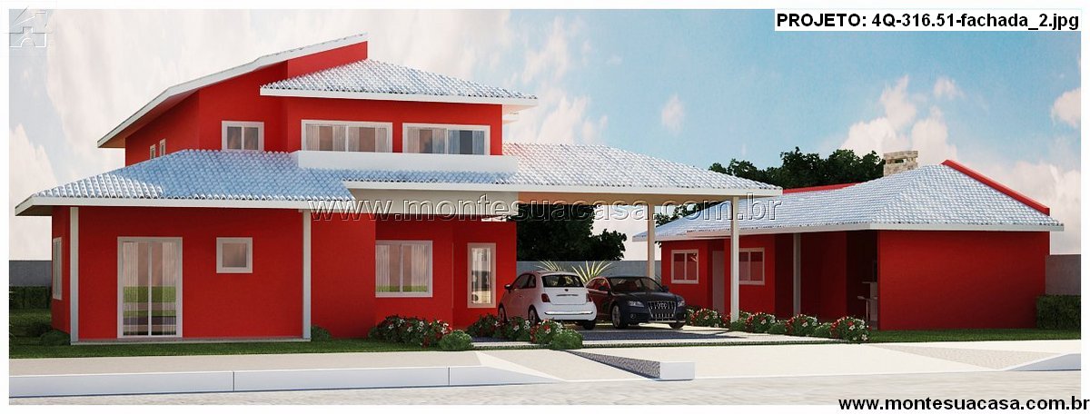 Este projeto arquitetônico de 316,51m² apresenta uma residência moderna de dois pavimentos, ideal para famílias que valorizam conforto, estética e funcionalidade. A fachada marcante em tom vermelho vibrante, combinada com telhado branco e amplas janelas, transmite personalidade e sofisticação. O design contemporâneo se destaca pela harmonia entre volumes, texturas e paisagismo.