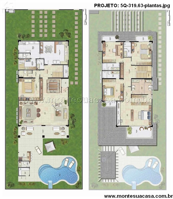 O sobrado combina elegância, praticidade e aproveitamento inteligente da área construída. A presença da piscina, da varanda gourmet e da integração interna garante alto valor de uso. As linhas contemporâneas e a organização dos espaços tornam o projeto adequado para famílias grandes que desejam ambientes completos e confortáveis. Assim, o conjunto final oferece arquitetura marcante, funcional e acolhedora.