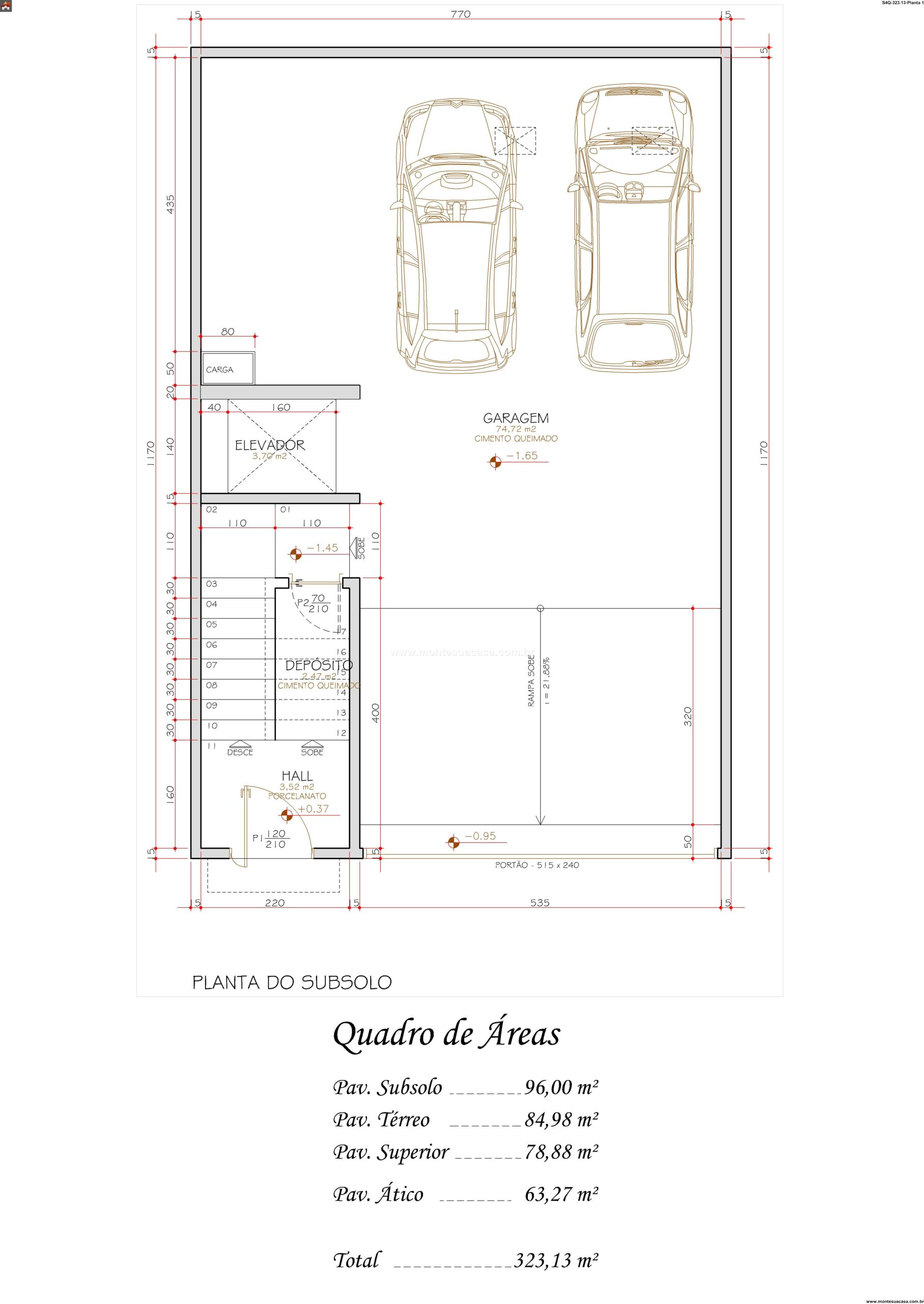 Explore o projeto S4Q-323.13, um sofisticado sobrado contemporâneo que se espalha por 323.13 metros quadrados de área construída. Esta residência foi meticulosamente planejada em quatro níveis, oferecendo uma distribuição funcional e espaçosa para famílias que buscam conforto e praticidade. O projeto integra harmoniosamente ambientes sociais amplos com áreas privativas bem distribuídas, criando um fluxo suave entre os espaços.