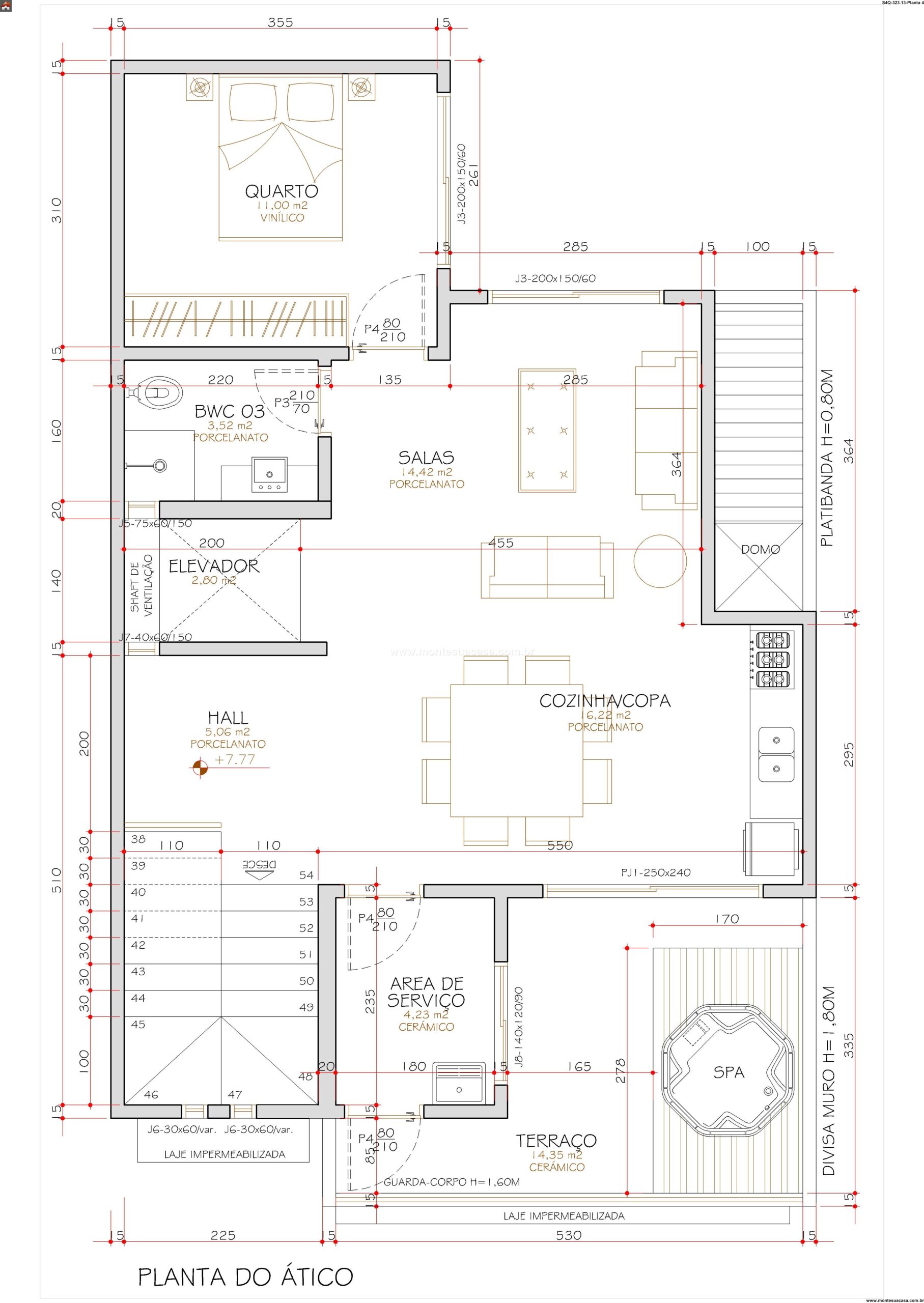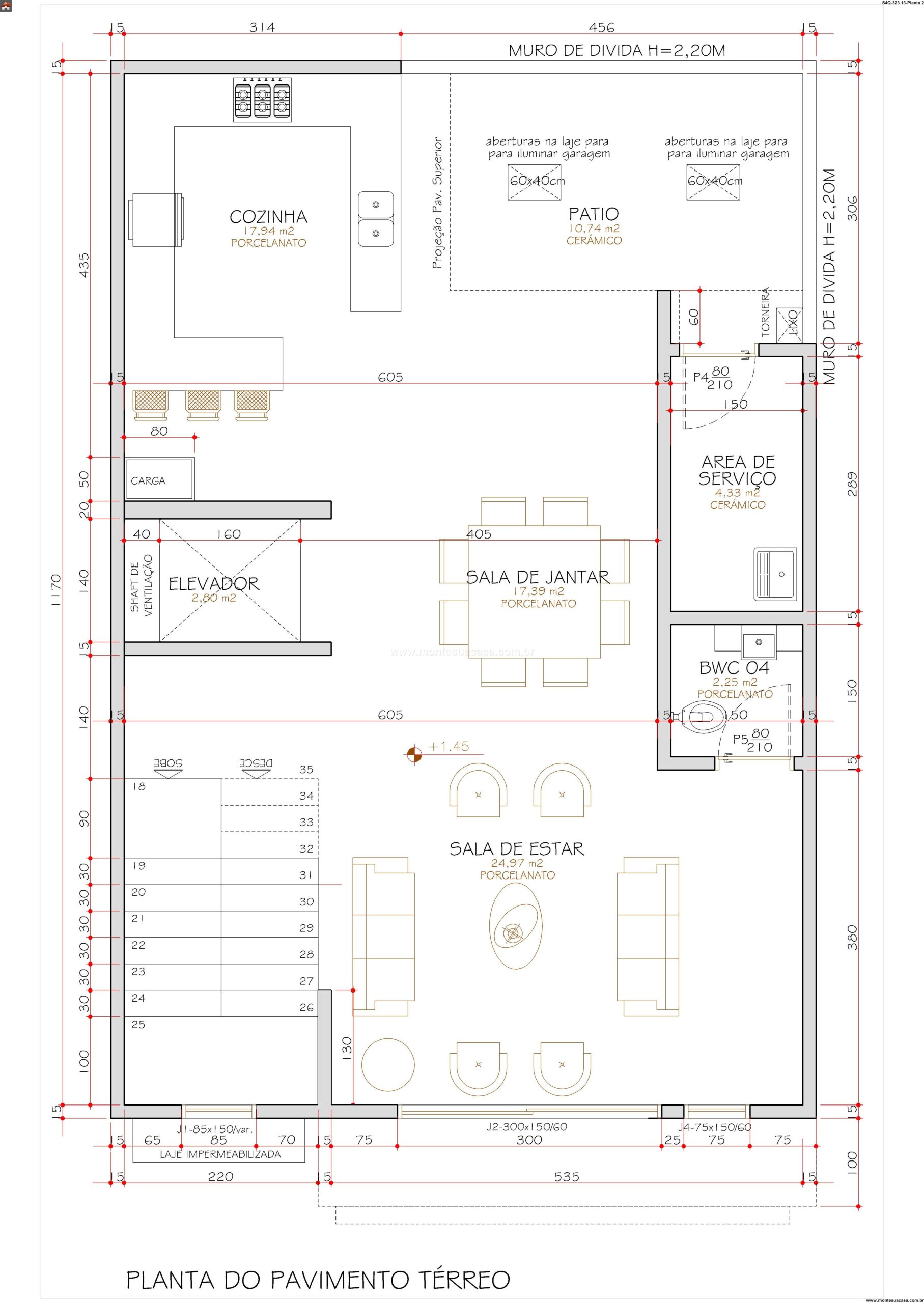 O sobrado apresenta uma planta inteligente que organiza os ambientes ao longo de subsolo, térreo, superior e ático. No pavimento térreo, a sala de estar generosa de 24,97 m² se conecta fluentemente com a cozinha de 17,94 m² e um prático pátio de serviço, promovendo a integração familiar. A área de serviço dedicada e um banheiro social completam este nível, garantindo total funcionalidade para o dia a dia.