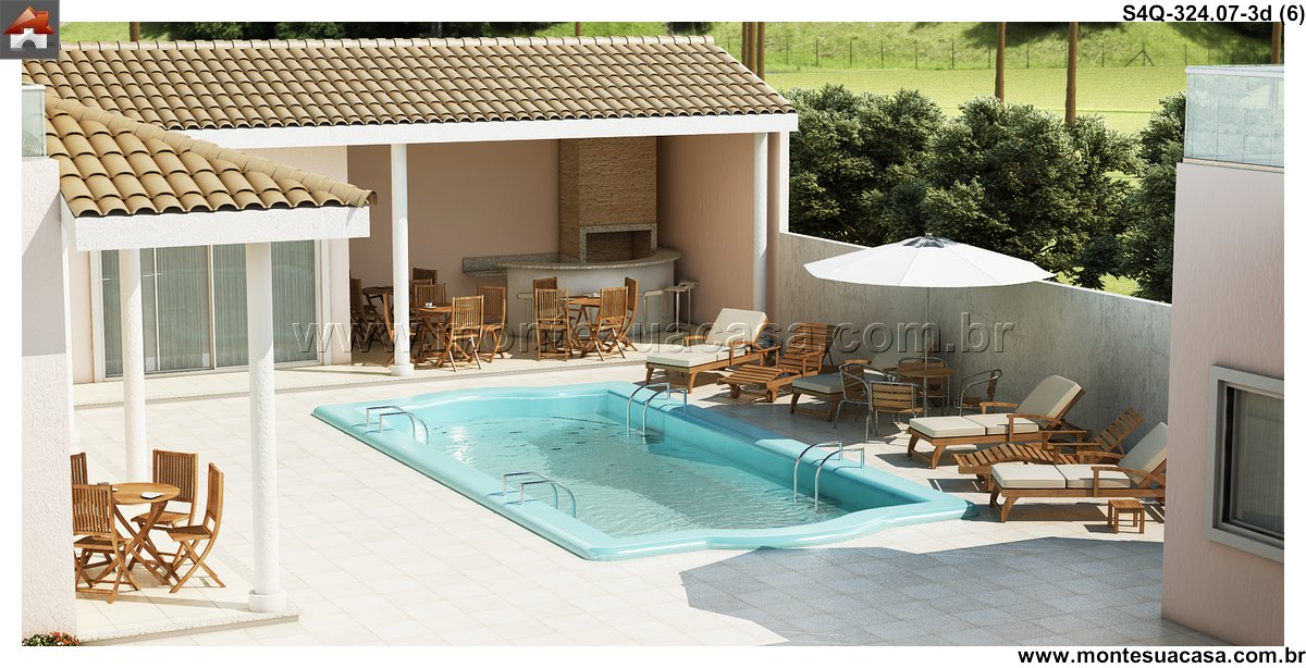 O projeto estende seu charme para as áreas externas, que foram pensadas para o lazer e o entretenimento. Um espaço gourmet coberto se conecta perfeitamente ao jardim, ideal para churrascos e reuniões ao ar livre. A presença de uma piscina complementa o ambiente de resort, convidando a momentos de descontração e refresco. O paisagismo harmonioso completa o cenário, criando um oasis privativo para todos os momentos.