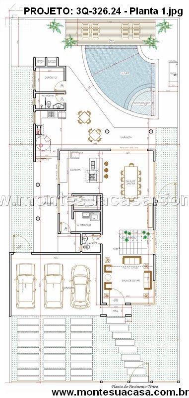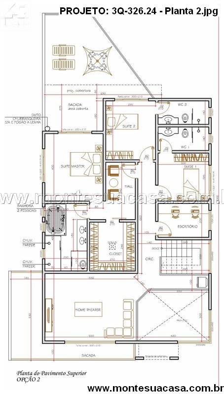 O térreo ainda conta com uma lavanderia funcional, lavabo e garagem coberta para três veículos. No pavimento superior, a área íntima revela três suítes espaçosas, sendo a suíte master um verdadeiro destaque. Ela conta com closet, banheiro com banheira de hidromassagem e acesso à ampla sacada privativa. Além disso, o projeto oferece um home theater e um escritório, atendendo perfeitamente às necessidades de quem trabalha em casa ou busca entretenimento em um ambiente reservado.