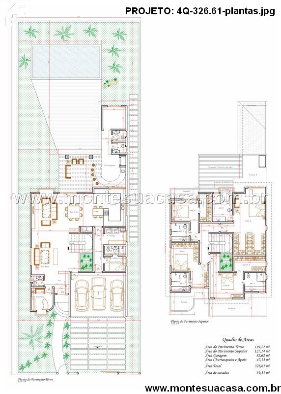 Este projeto arquitetônico moderno de 326,61m² apresenta uma residência sobrado com quatro suítes, piscina com deck de madeira e área gourmet integrada. Ideal para famílias que valorizam conforto, sofisticação e funcionalidade, o projeto combina estética contemporânea com soluções inteligentes de aproveitamento de espaço.