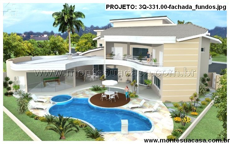 Projeto de sobrado moderno com 3 quartos, piscina e campo de futebol