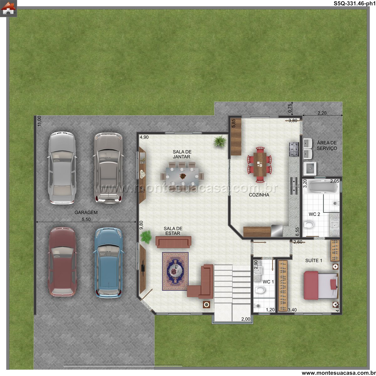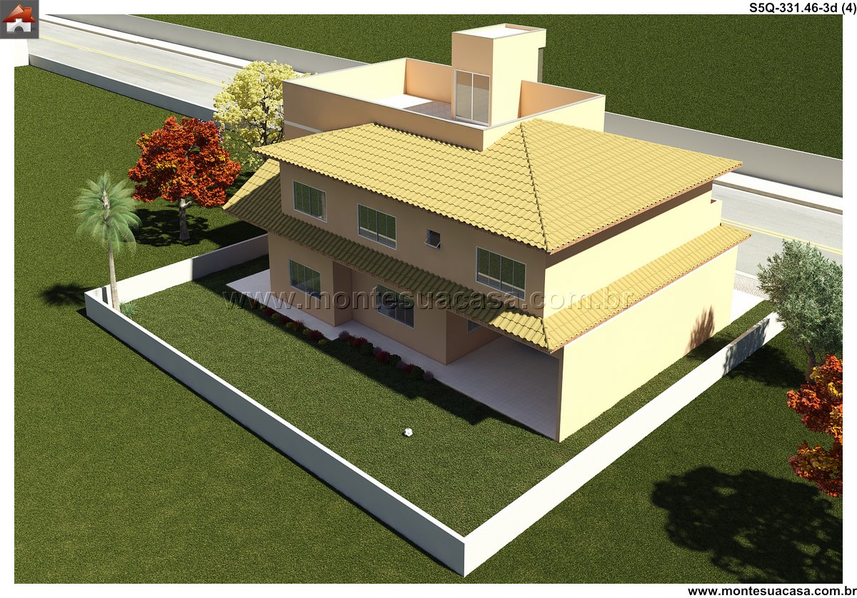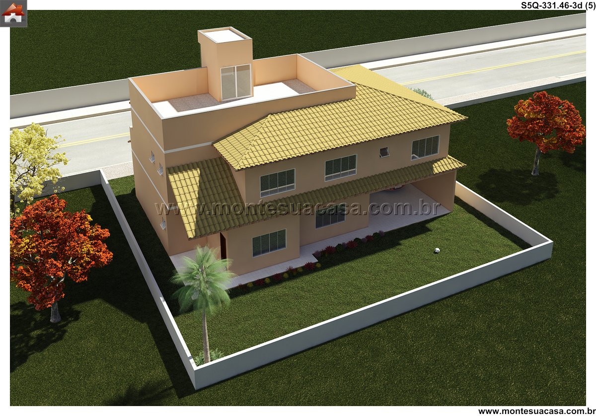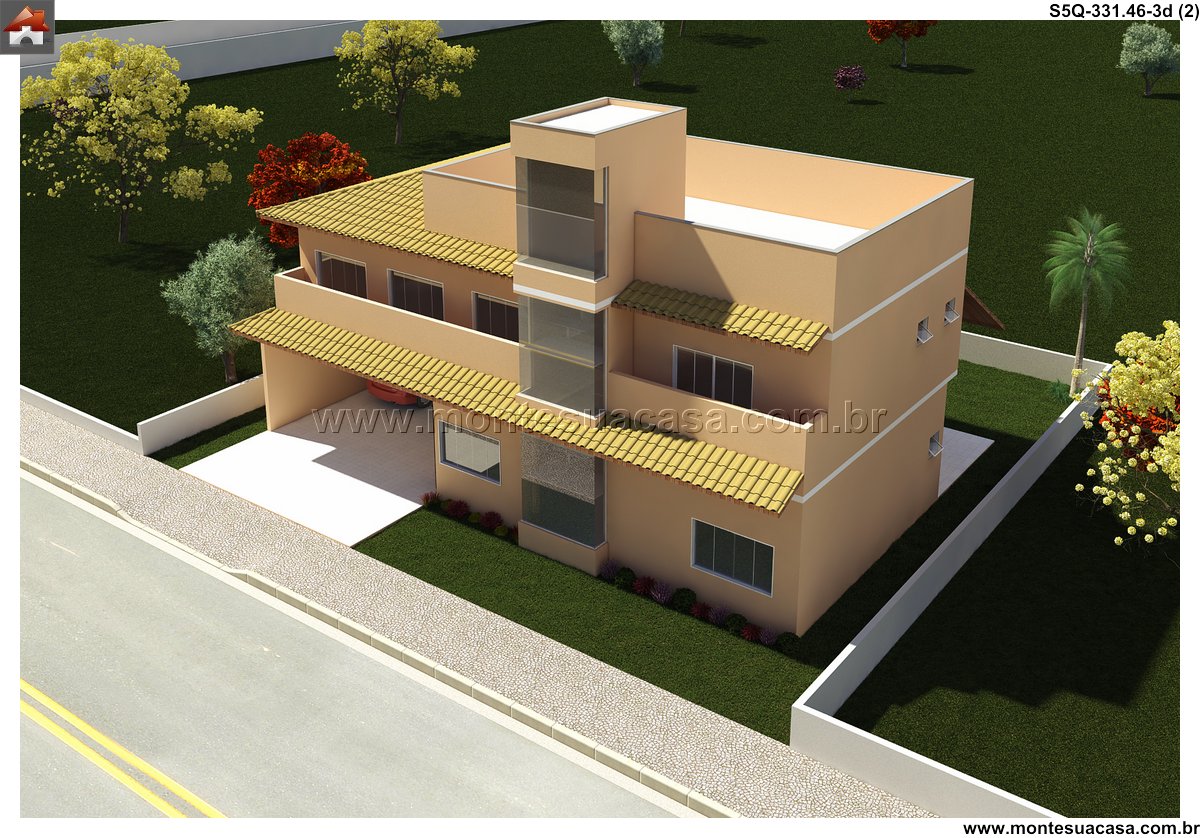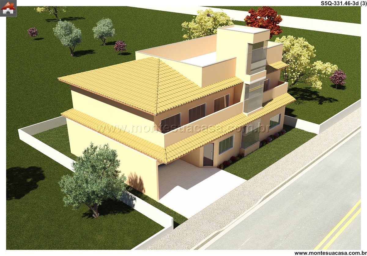 Este projeto de sobrado moderno, com 331.46m² de área construída, oferece um planejamento inteligente e fluido, distribuído em dois pavimentos. A arquitetura prioriza a integração entre os ambientes, criando uma residência familiar ampla, funcional e repleta de conforto. A fachada, com linhas contemporâneas, estabelece uma identidade visual marcante desde a chegada.