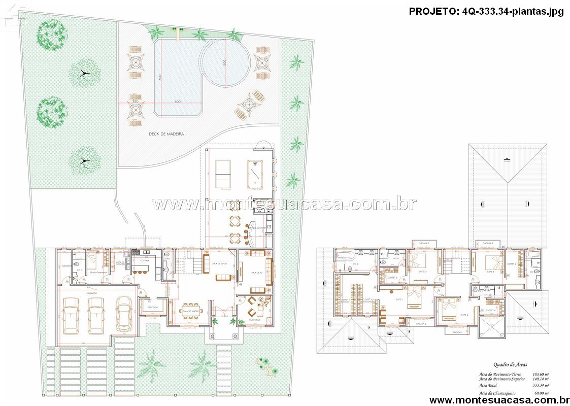 Este projeto arquitetônico apresenta uma residência sofisticada de dois pavimentos, ideal para famílias que valorizam conforto, funcionalidade e lazer. Com área total de 333,34m², o imóvel combina espaços internos amplos com uma área externa encantadora, criando uma experiência residencial completa.