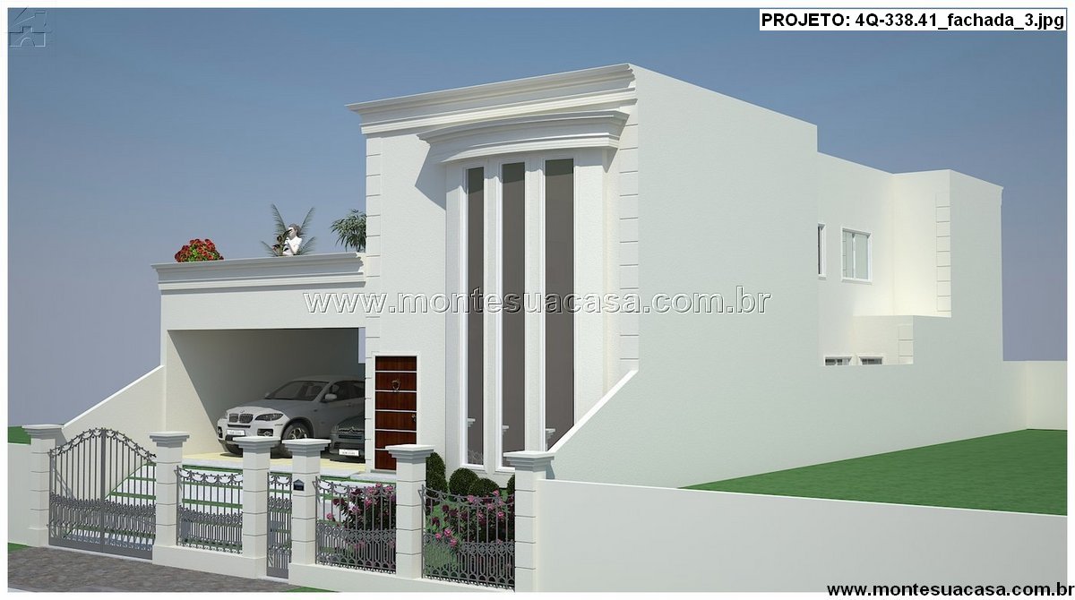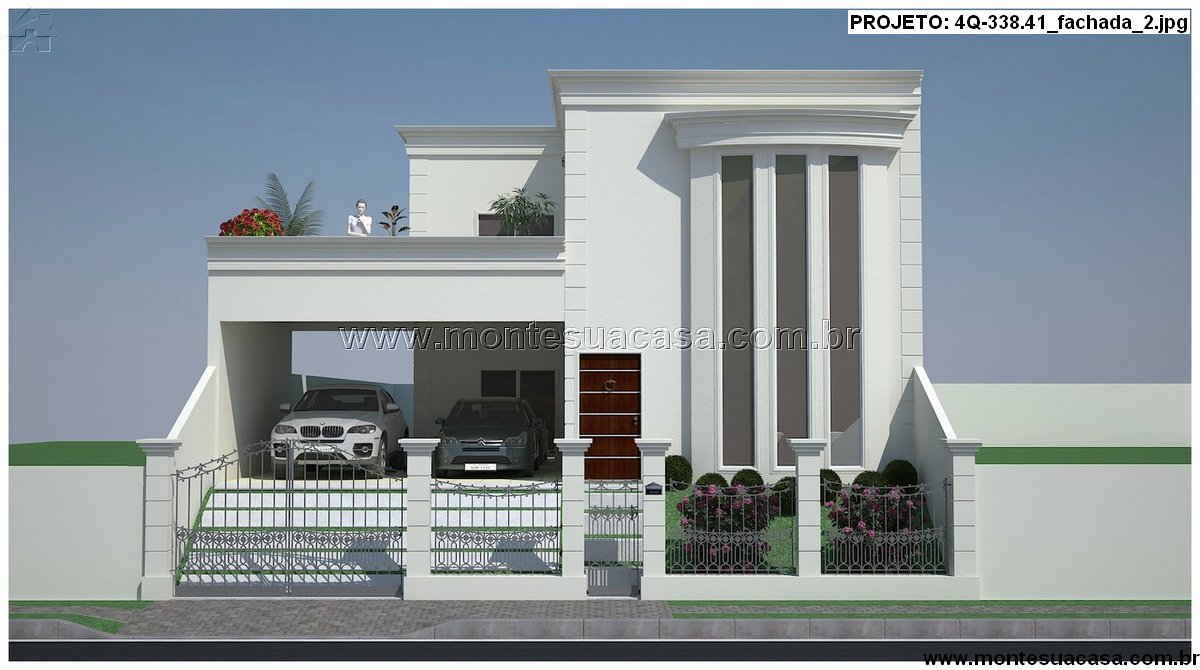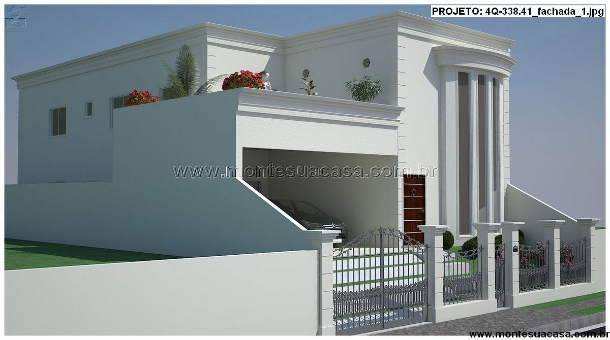 Este projeto de casa sobrado com 338,41m² combina sofisticação arquitetônica com funcionalidade moderna, ideal para famílias que valorizam conforto e estilo. A fachada imponente destaca-se pelas colunas verticais e amplas janelas de vidro, que proporcionam iluminação natural abundante e valorizam o design contemporâneo.