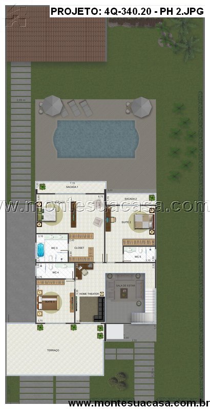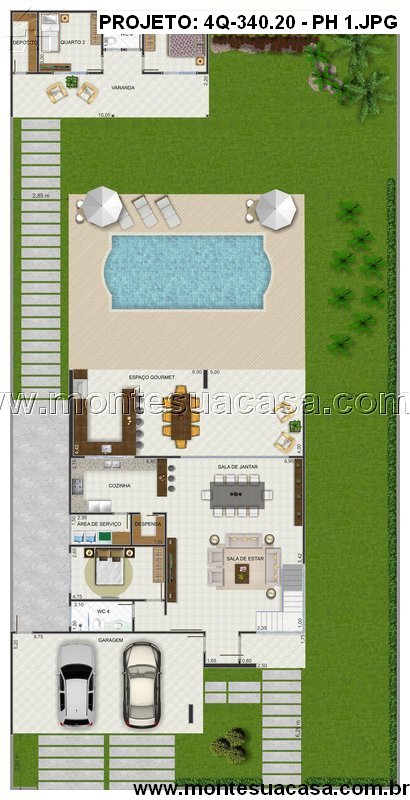 Detalhes que fazem a diferença A varanda frontal, o terraço e os acabamentos sofisticados reforçam o caráter premium do projeto. A garagem coberta comporta dois veículos, e o sistema de circulação foi pensado para garantir fluidez e praticidade no dia a dia. Este projeto é perfeito para famílias que valorizam o design moderno, o lazer completo e a funcionalidade.