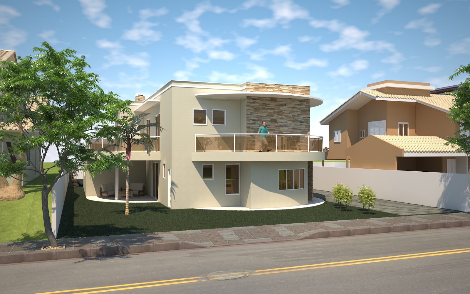 Esta residência moderna de 340.69m² impressiona com seu design arrojado e sua planta humanizada, criada para oferecer conforto e praticidade no dia a dia. O projeto prioriza a integração entre os ambientes, promovendo uma fluidez visual e espacial que valoriza cada metro quadrado. A fachada, com seus traços limpos e volumetria contemporânea, estabelece uma identidade forte e convidativa, anunciando o refinamento que se encontra em seu interior.