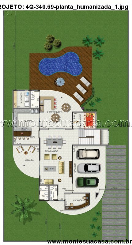 O coração da casa é a área social, que integra uma ampla sala de estar e jantar a um moderno espaço gourmet. Este ambiente é perfeito para receber amigos e familiares, oferecendo praticidade e elegância para refeições e encontros. A área de lazer é um destaque, apresentando uma piscina generosa que se torna o centro das atenções nos dias quentes, complementando o conceito de entretenimento e descanso.