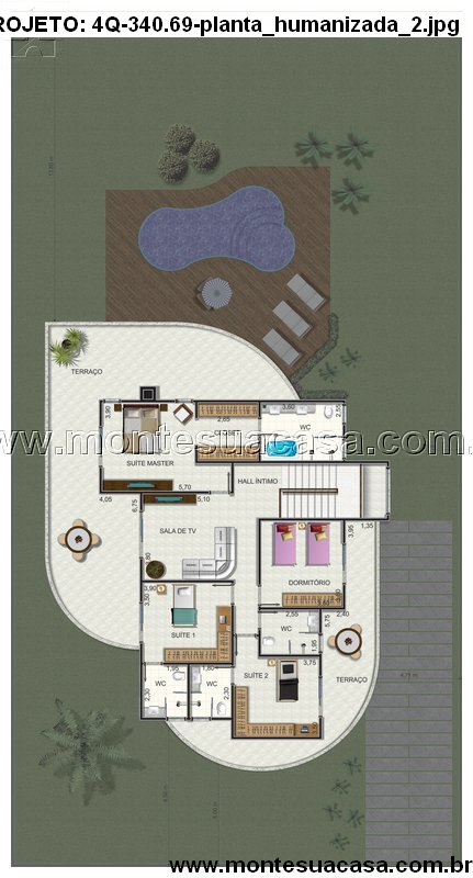 Os dormitórios são distribuídos de forma inteligente na planta, garantindo privacidade e sossego para os moradores. O projeto detalha ambientes bem dimensionados, com circulação otimizada e iluminação cuidadosamente planejada. Cada cômodo foi pensado para atender às necessidades de uma família moderna, unindo estética e funcionalidade em um só lugar.