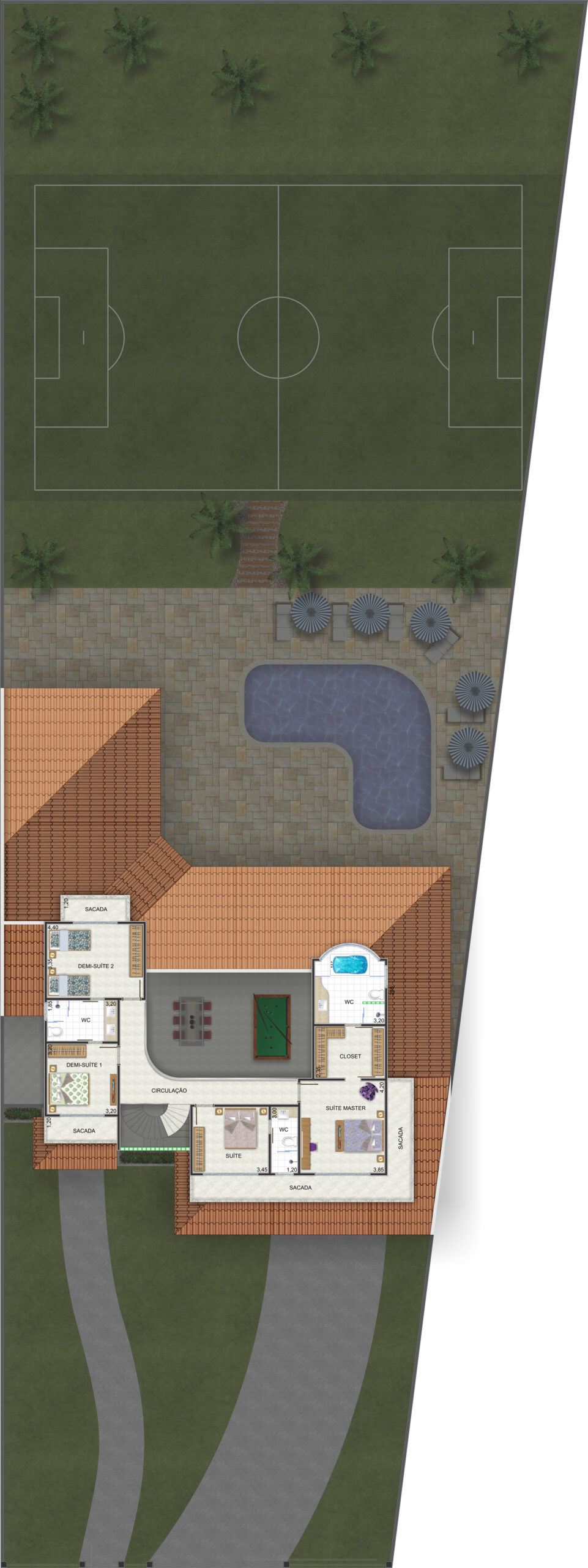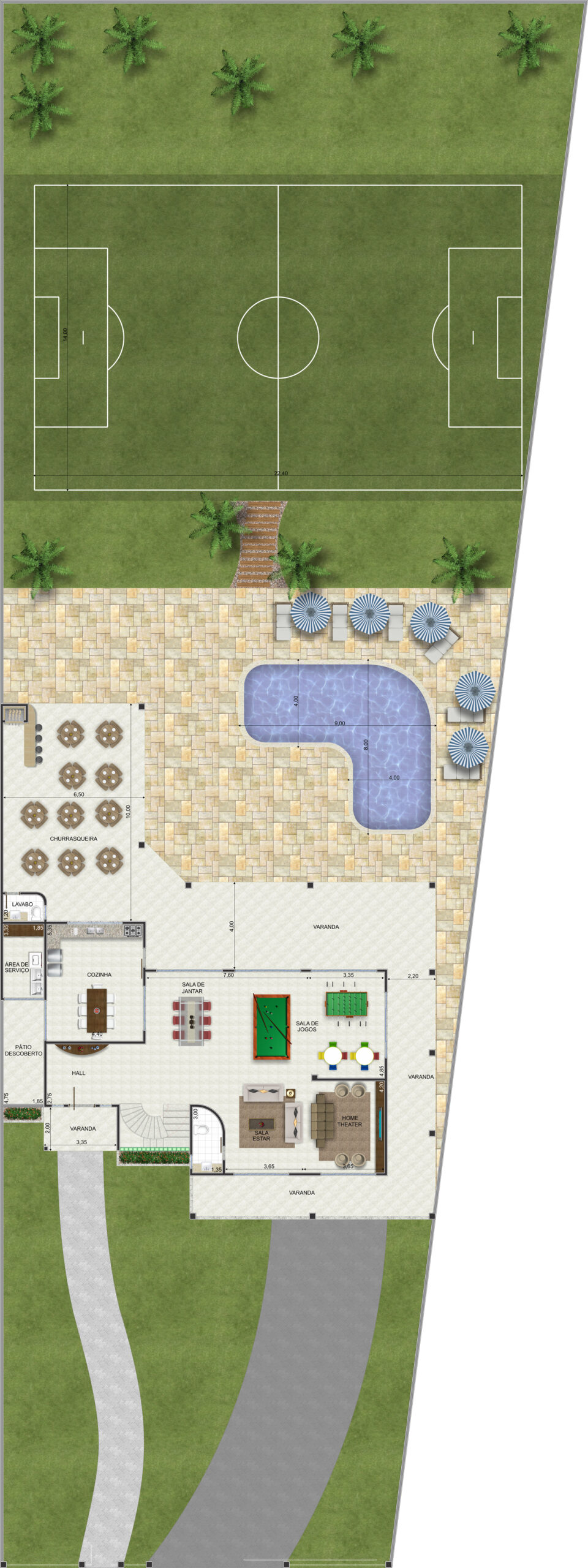 A arquitetura valoriza a conexão entre o interior e o exterior, promovendo uma vivência integrada com a natureza. Os jardins e possíveis áreas de lazer foram pensados como extensões dos ambientes internos. A piscina se torna um ponto focal para o lazer nos dias quentes, complementando o projeto. A varanda gourmet é um convite para refeições ao ar livre e momentos de descontração. Este projeto cria uma residência completa, onde cada metro quadrado foi otimizado para o seu melhor aproveitamento.