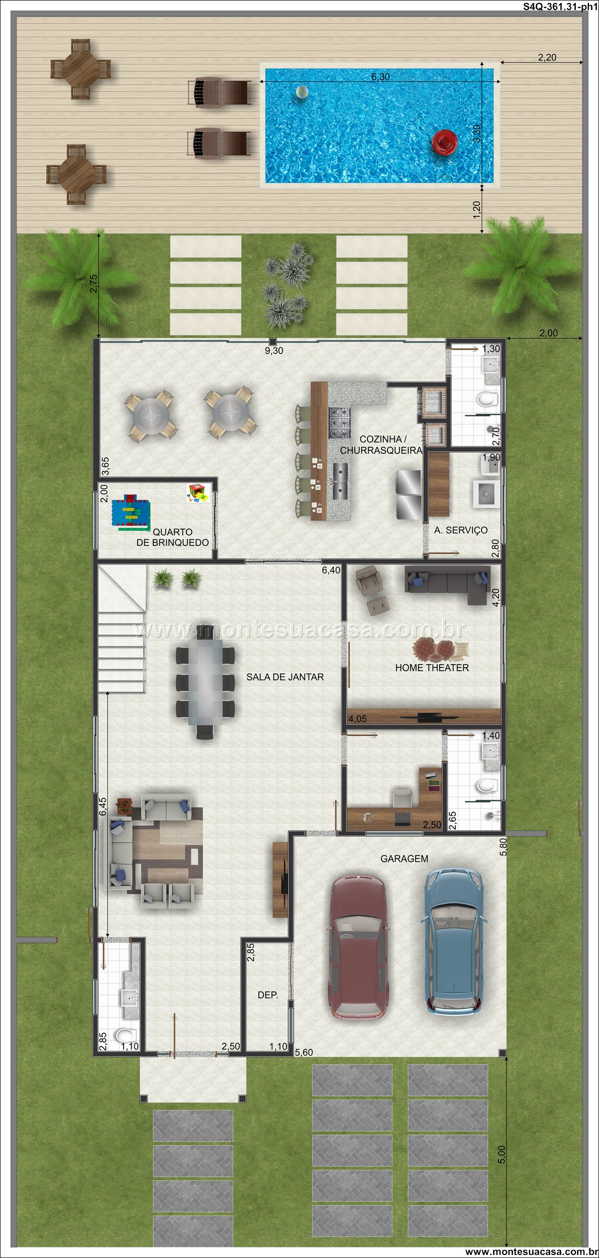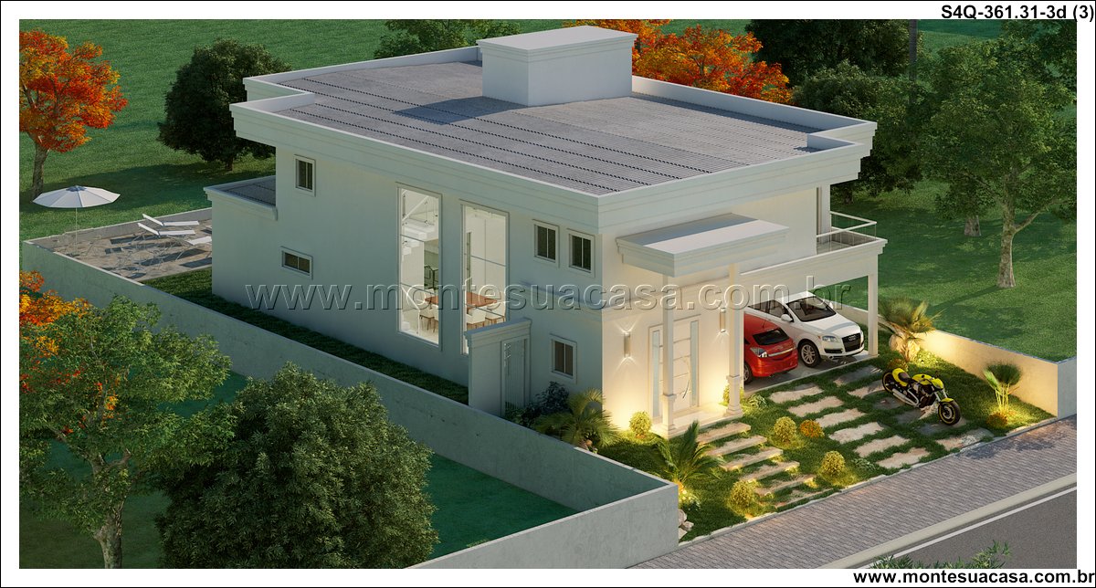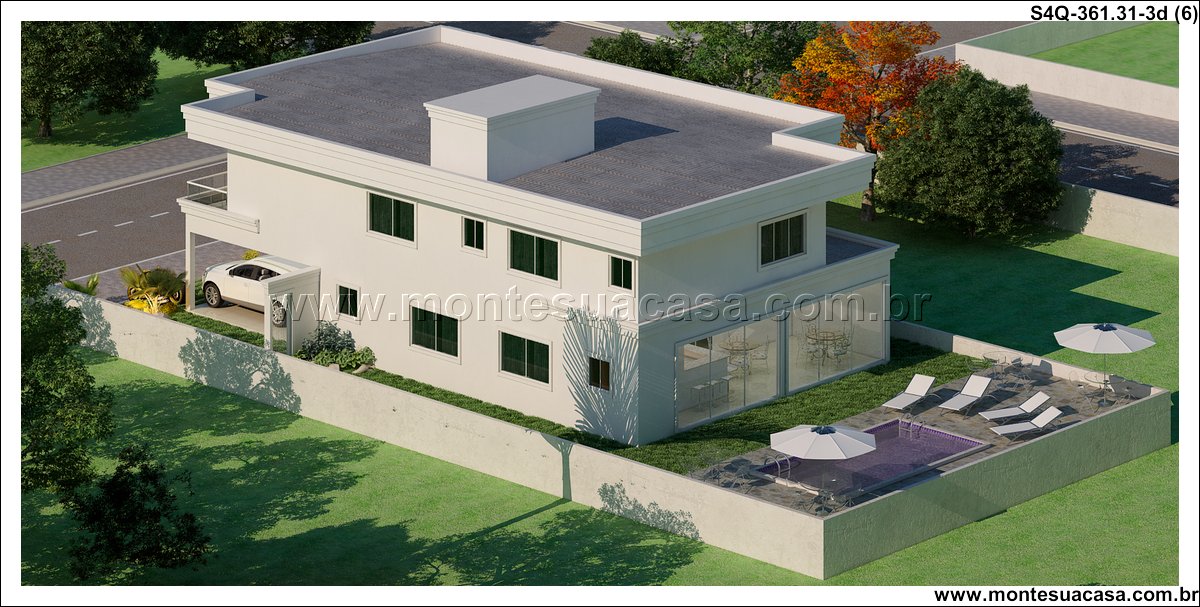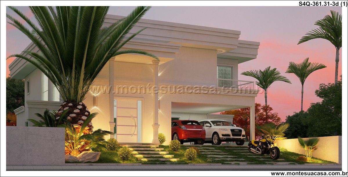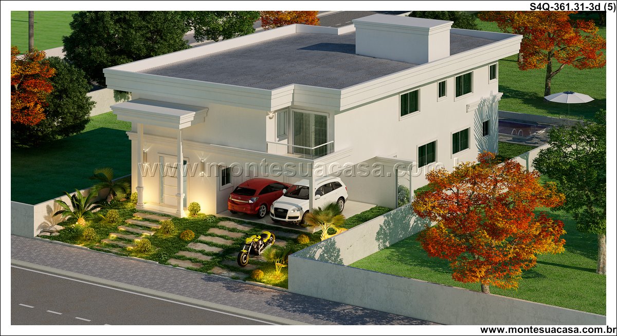 Este sobrado de 361.31m² apresenta um design contemporâneo que prioriza o conforto e a funcionalidade para uma família. O projeto distribui os ambientes em dois pavimentos, criando uma harmonia perfeita entre os espaços de convívio e a privacidade dos dormitórios. A fachada, limpa e com linhas definidas, estabelece um tom moderno que se repete em todo o interior. A planta foi meticulosamente planejada para oferecer praticidade no dia a dia e ser o palco de momentos memoráveis de lazer.
