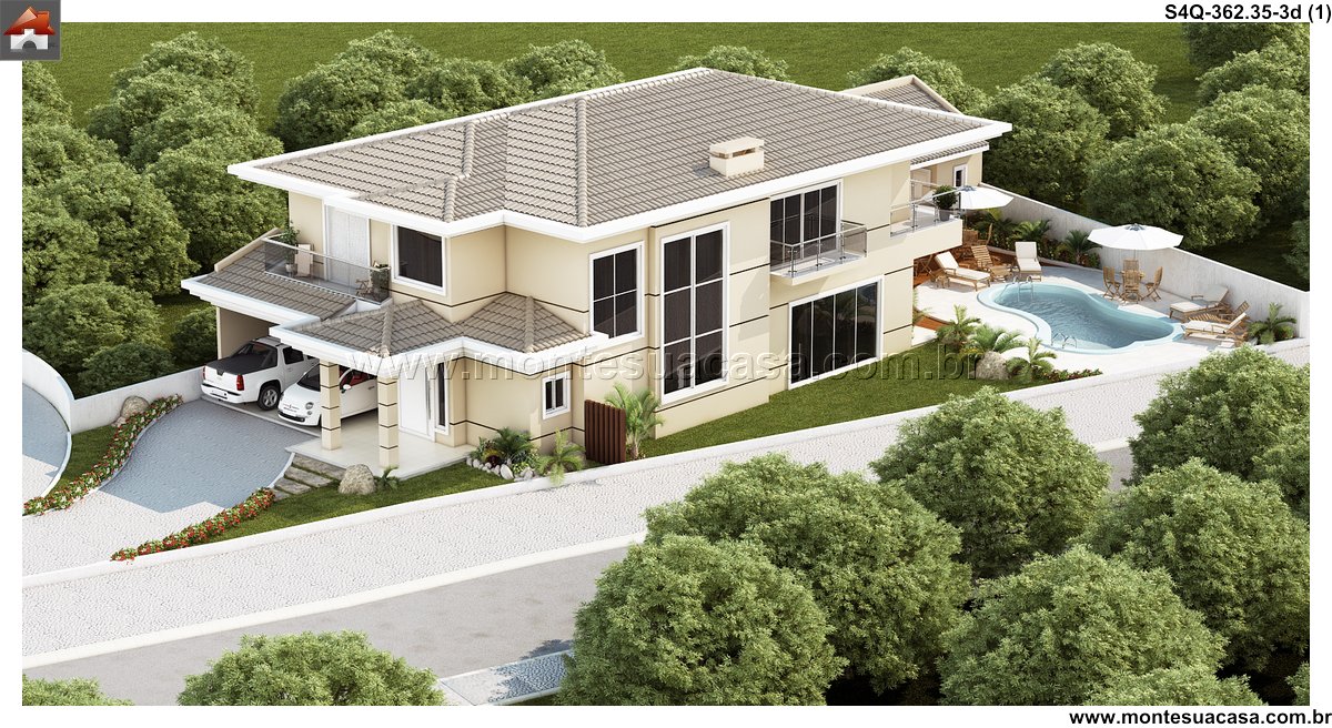 Os quatro quartos proporcionam amplo espaço para a família, sendo a suíte master um verdadeiro refúgio de privacidade. Os ambientes sociais foram estrategicamente posicionados para facilitar o fluxo do dia a dia e incentivar a convivência. A planta interna revela um layout prático que atende perfeitamente às necessidades de uma vida moderna.