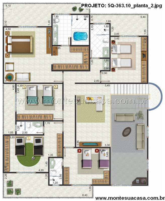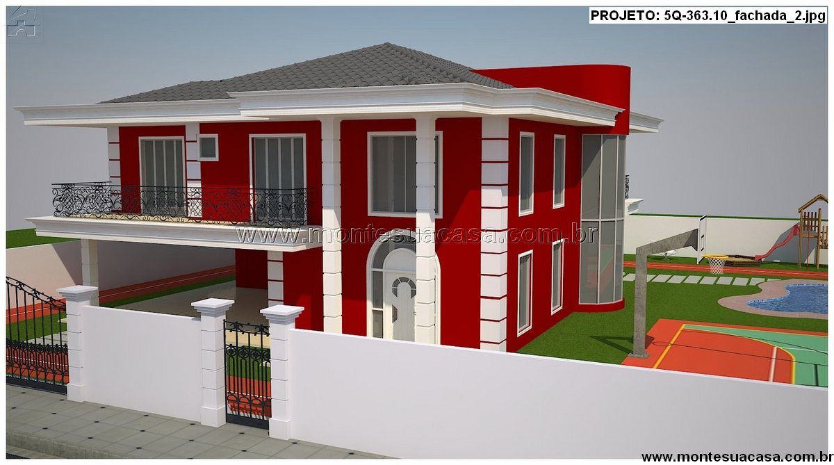 Este projeto de 363,10m² entrega exatamente o que muitas famílias sonham, mas raramente encontram: espaço de verdade, integração total das áreas sociais, lazer completo e cinco dormitórios bem distribuídos. A composição geral une funcionalidade e imponência, com um sobrado que não desperdiça nenhum metro e prioriza convivência, privacidade e amplitude.