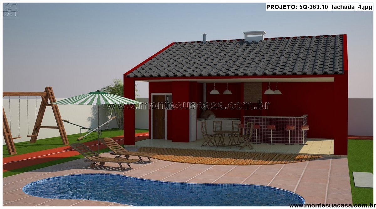 O diferencial está no lote externo: piscina curva, quiosque com churrasqueira e bancada ampla, espaço de descanso sombreado e um campo esportivo de dimensões generosas. Tudo isso integrado por caminhos e áreas verdes que ampliam a sensação de convivência. O playground complementa o lazer infantil, tornando o conjunto ideal para famílias grandes.