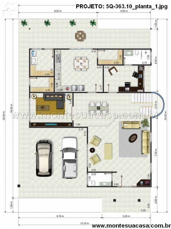 O projeto atende famílias que priorizam espaço, estética de presença e lazer completo sem depender de clubes externos. A organização interna é direta e objetiva, sem áreas perdidas, e o lote é explorado ao máximo para oferecer um conjunto residencial de alto padrão.