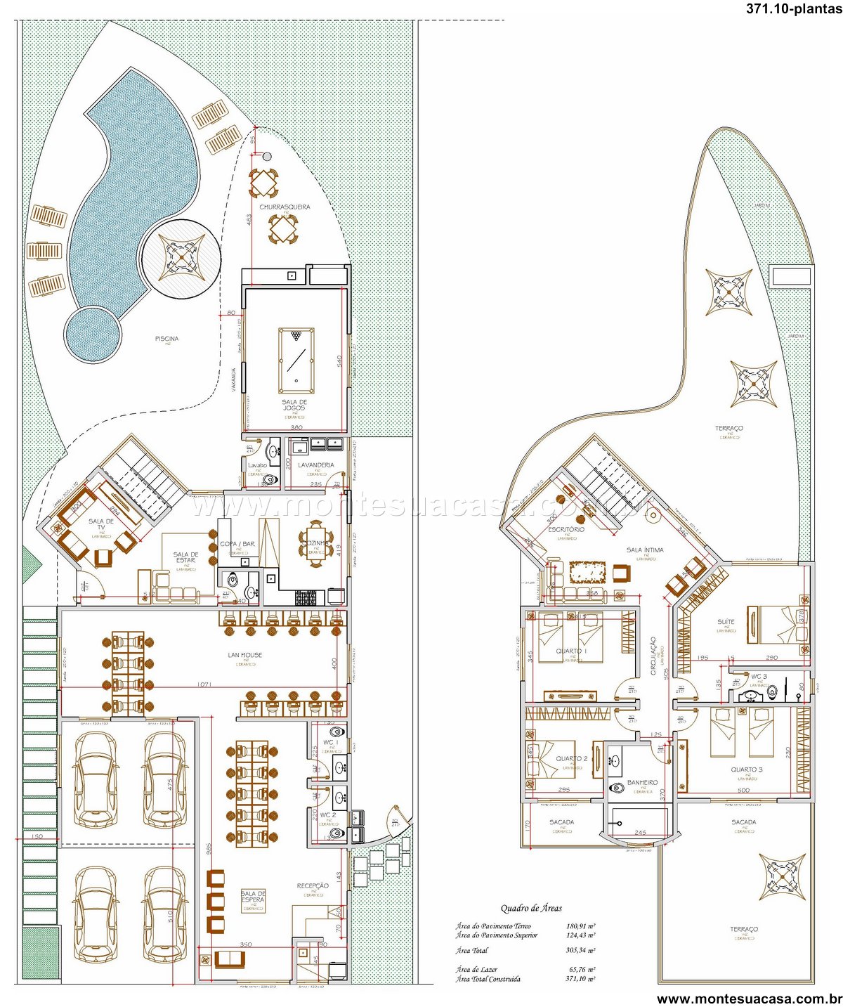 Distribuição inteligente dos ambientes No térreo, além da área comercial com acesso independente, o projeto inclui recepção, sala de reunião, sala de jogos, lavanderia, copa/jantar, sala de estar e cozinha. A integração entre os ambientes favorece a funcionalidade e o fluxo natural. A garagem coberta comporta até quatro veículos, garantindo praticidade e segurança.