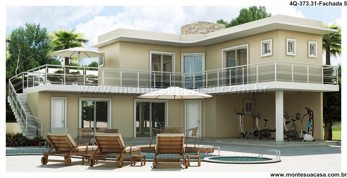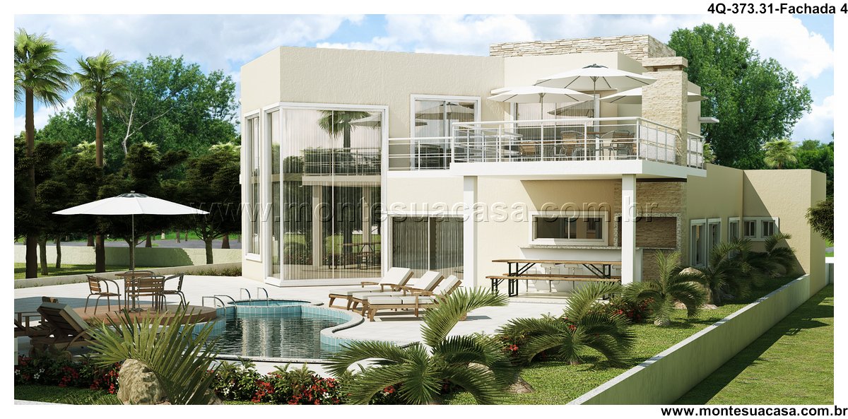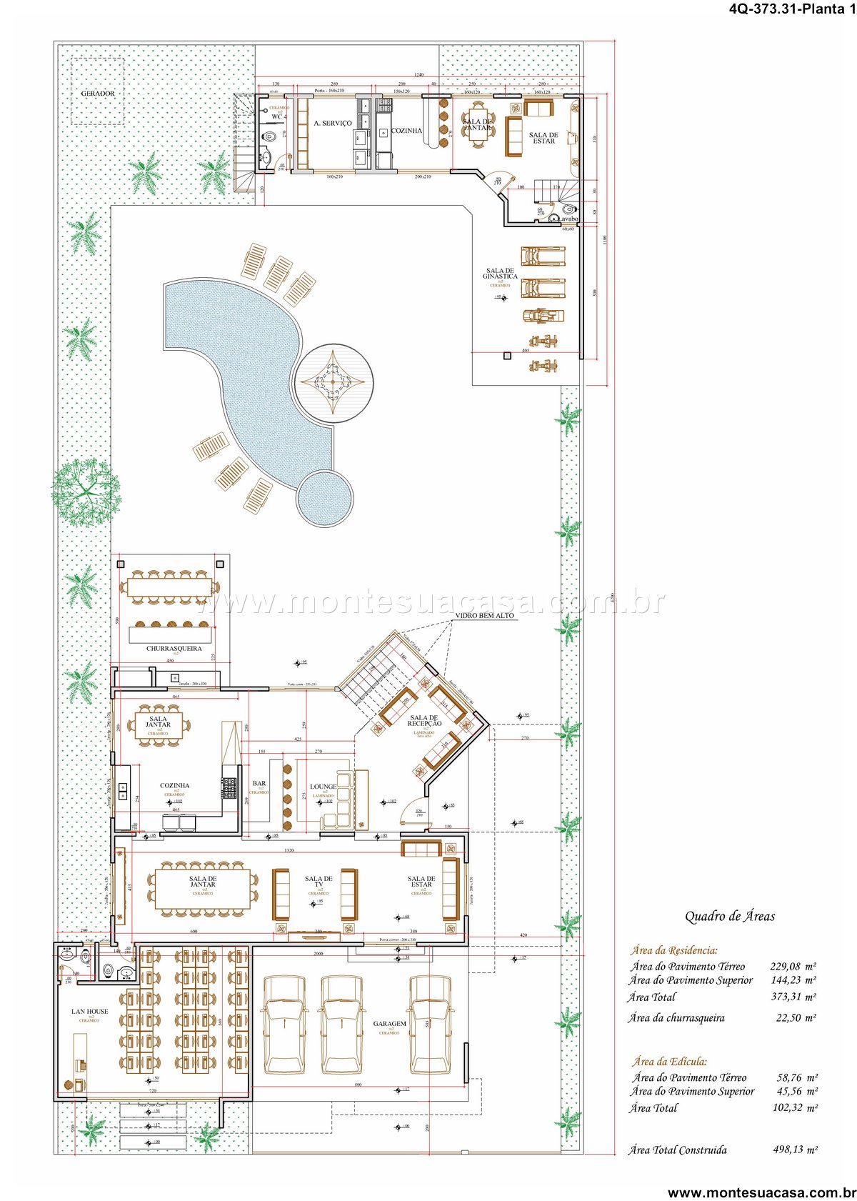 Sobrado moderno com área comercial e lazer completo Este projeto arquitetônico de 373,31m² apresenta um sobrado contemporâneo que une moradia de alto padrão com funcionalidade comercial. Ideal para famílias empreendedoras, o imóvel oferece quatro suítes, área de lazer completa e uma lanhouse com acesso independente na fachada.