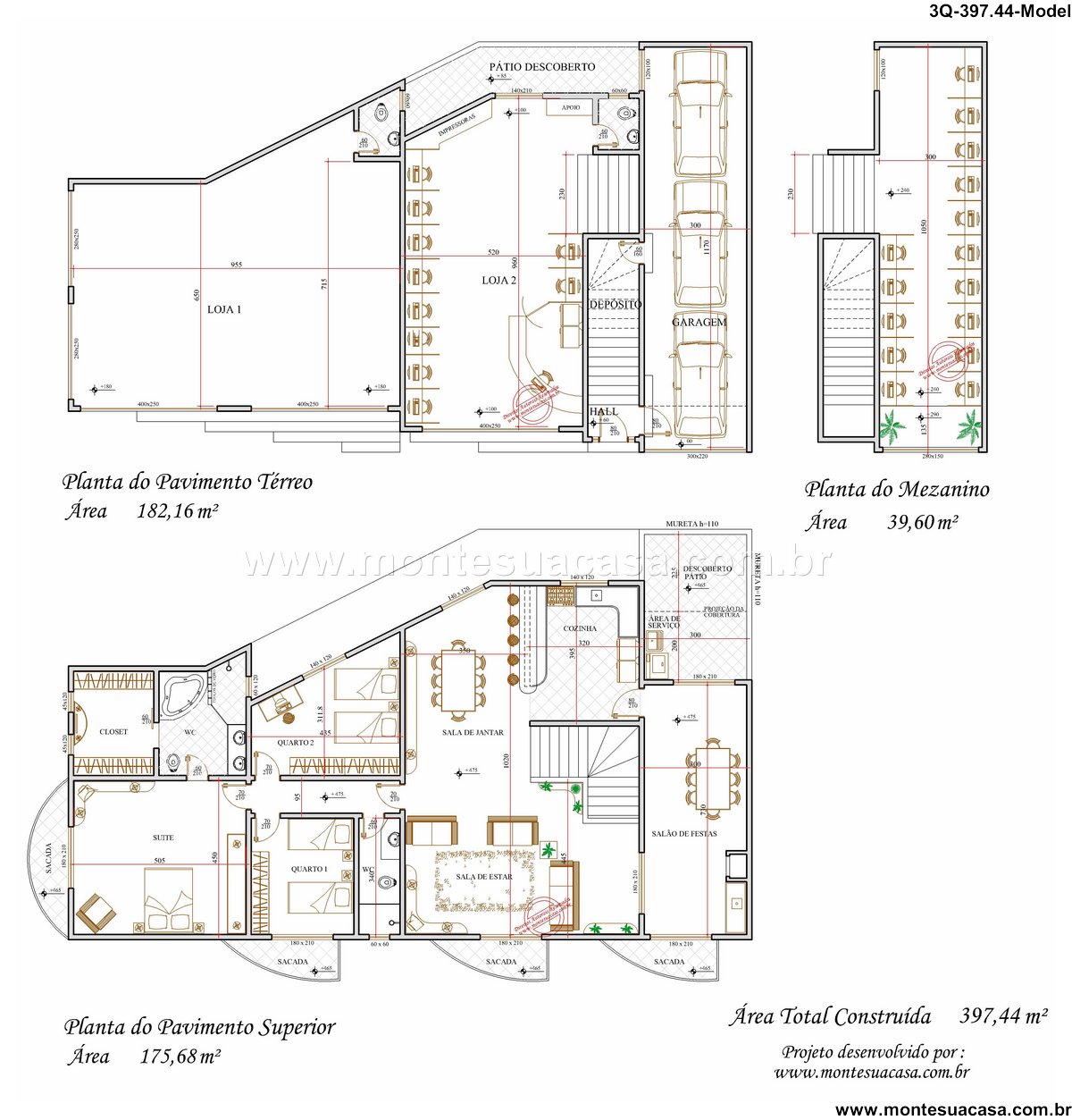 Este projeto arquitetônico apresenta um edifício multifuncional que une espaços comerciais e residenciais em uma estrutura de três níveis, ideal para áreas urbanas com alta demanda por imóveis versáteis. Com área total construída de 397,44 m², o projeto foi desenvolvido para oferecer funcionalidade, conforto e aproveitamento inteligente do terreno.