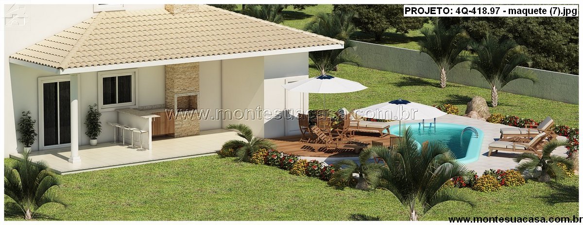 O projeto valoriza a conexão com o exterior, criando uma transição suave entre os ambientes internos e a área de lazer. Esta área foi pensada para o entretenimento, podendo incluir uma piscina, espaço gourmet coberto e um jardim. A sacada ampla serve como uma extensão da sala, ideal para momentos de descontração ao ar livre. Dessa forma, a casa se expande para o jardim, oferecendo múltiplas possibilidades de uso e lazer.