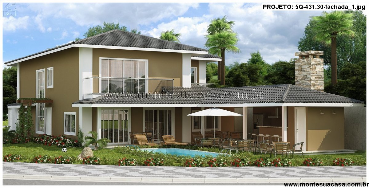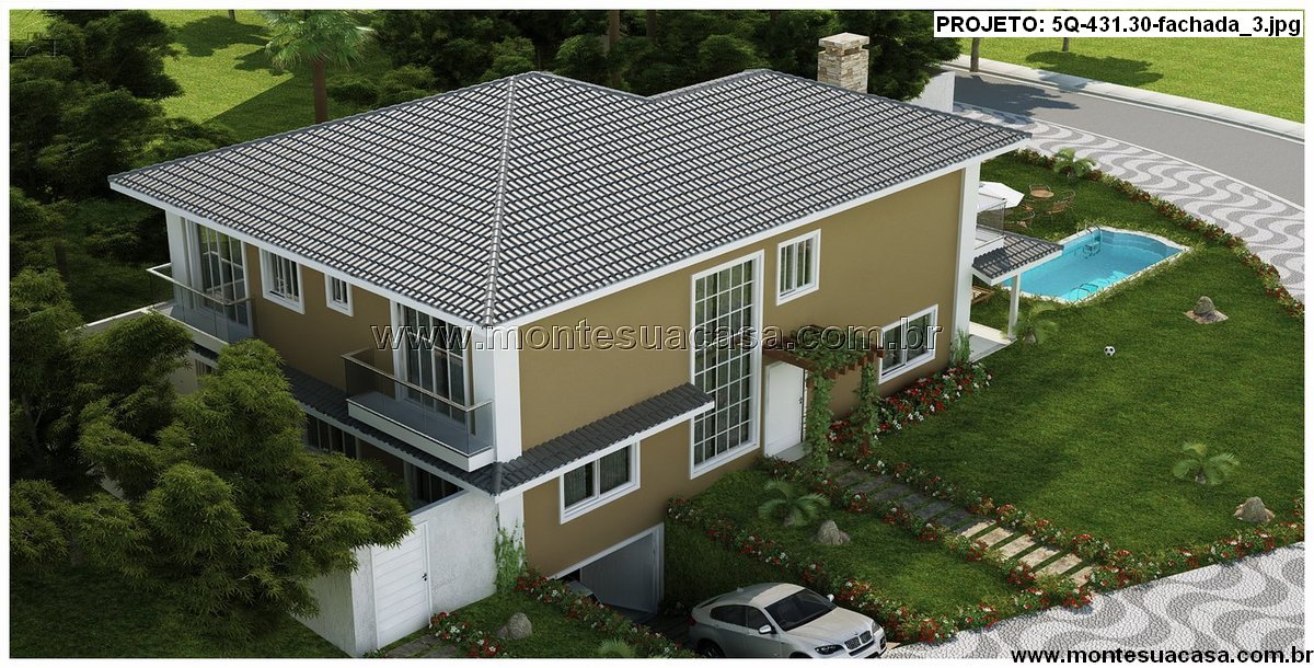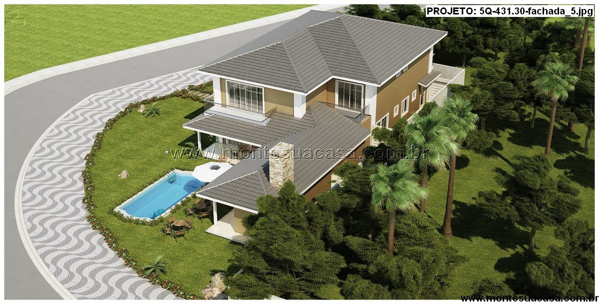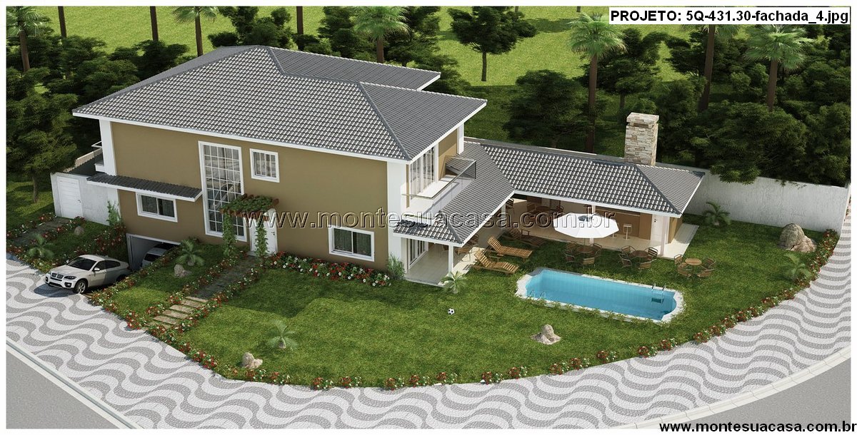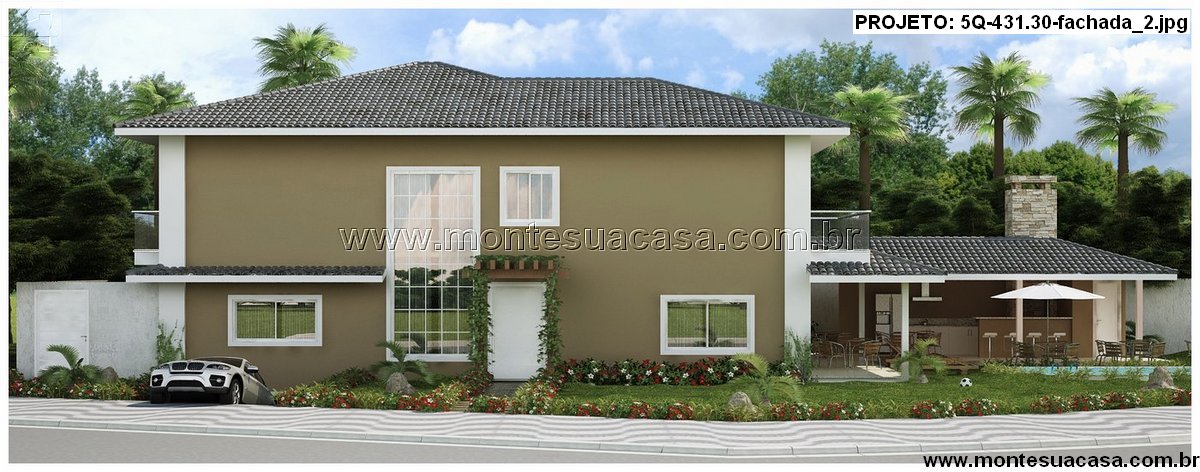 Este sobrado de 431,30 m² foi desenvolvido para quem precisa de amplitude verdadeira, integração total dos ambientes e uma área de lazer que funciona como extensão natural da casa. O projeto prioriza circulação fluida, suítes generosas e uma composição volumétrica forte, marcada por telhados inclinados, grandes aberturas e varandas contínuas. O resultado é uma residência que se impõe no terreno e entrega funcionalidade para uso diário e para grandes encontros familiares.