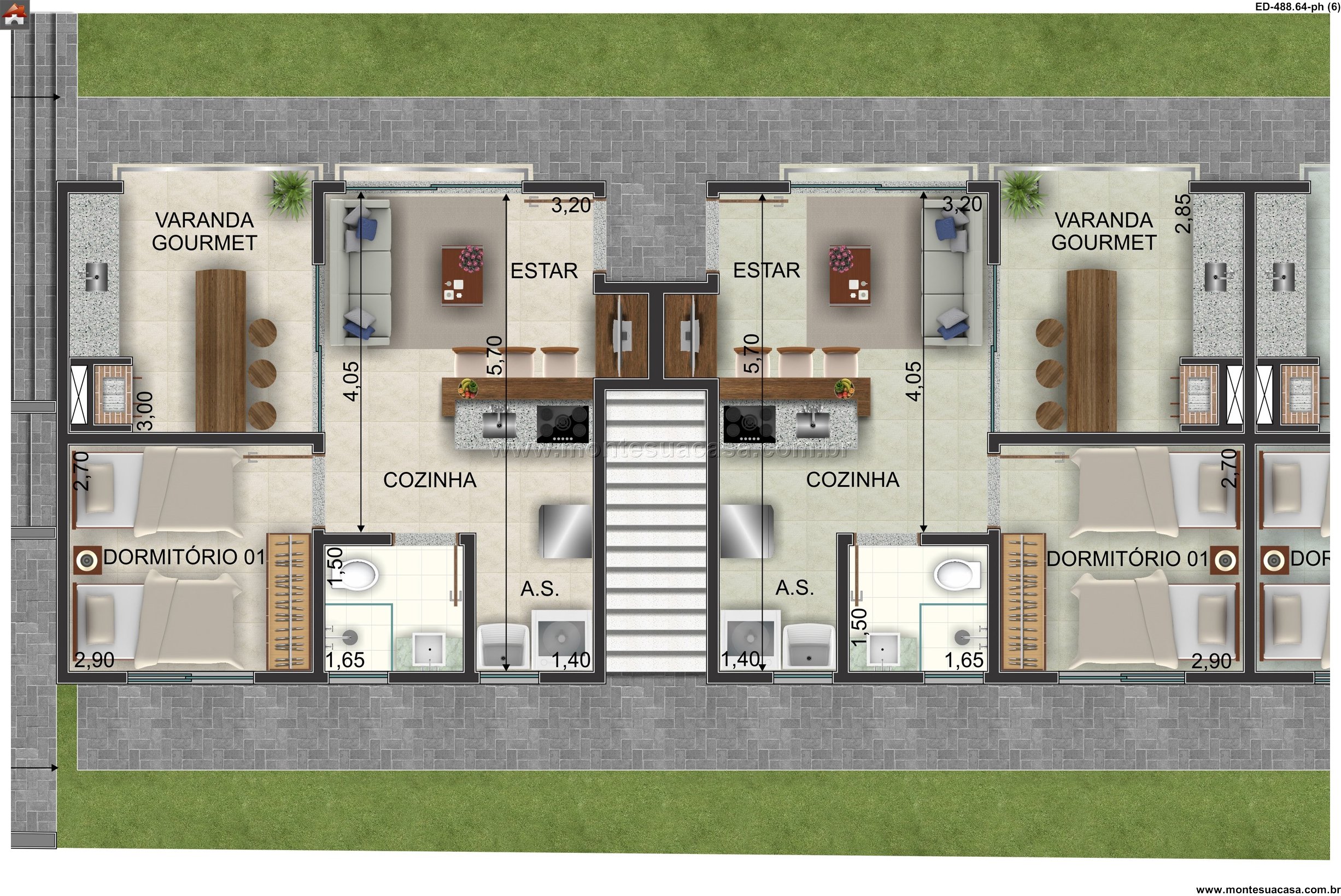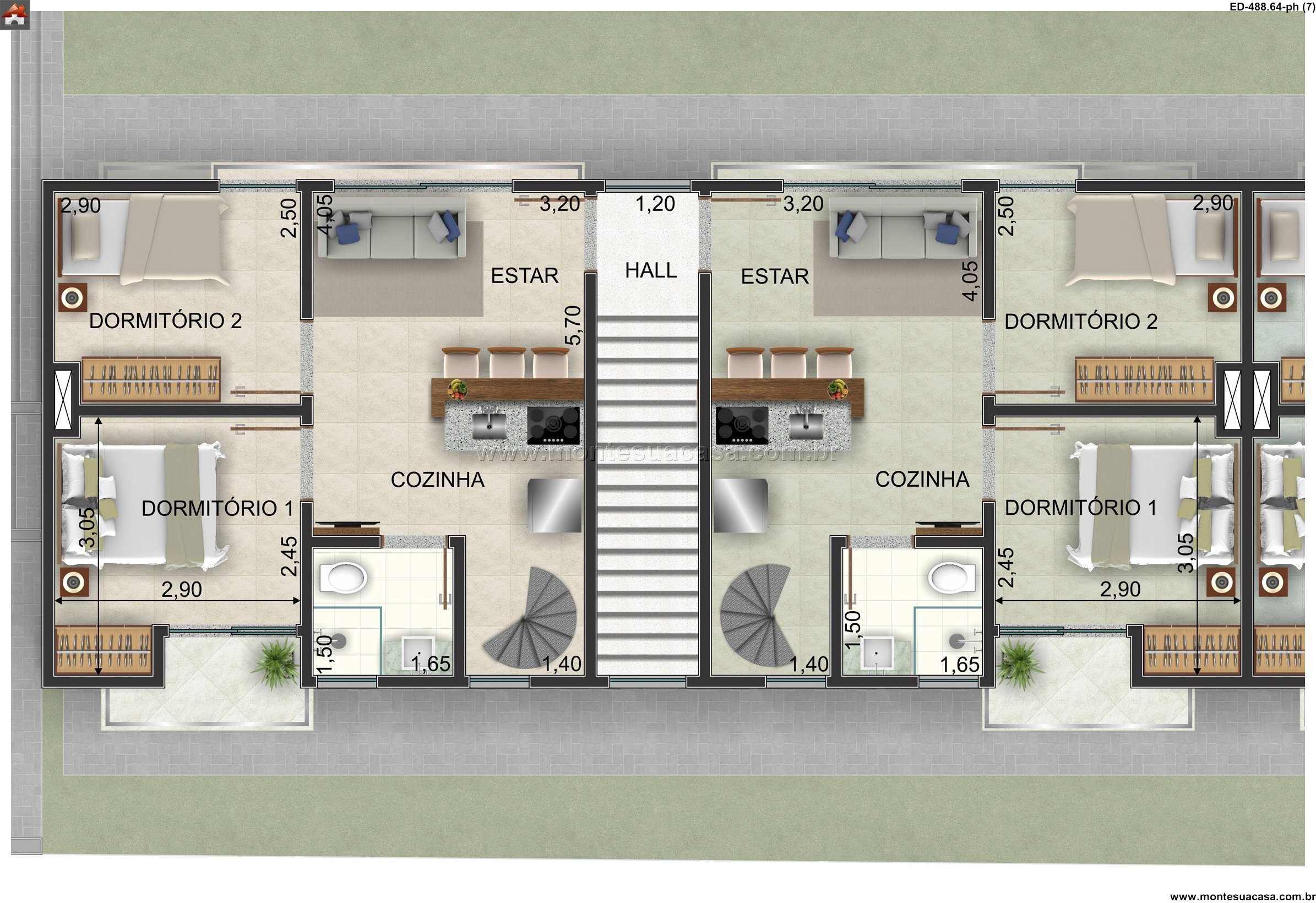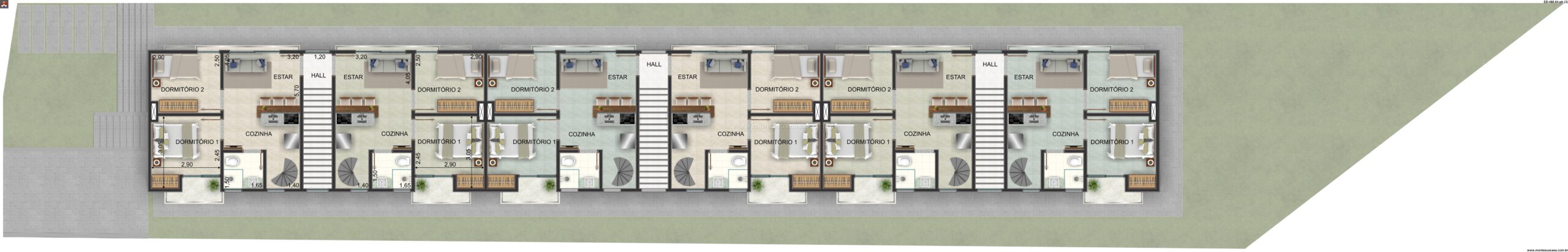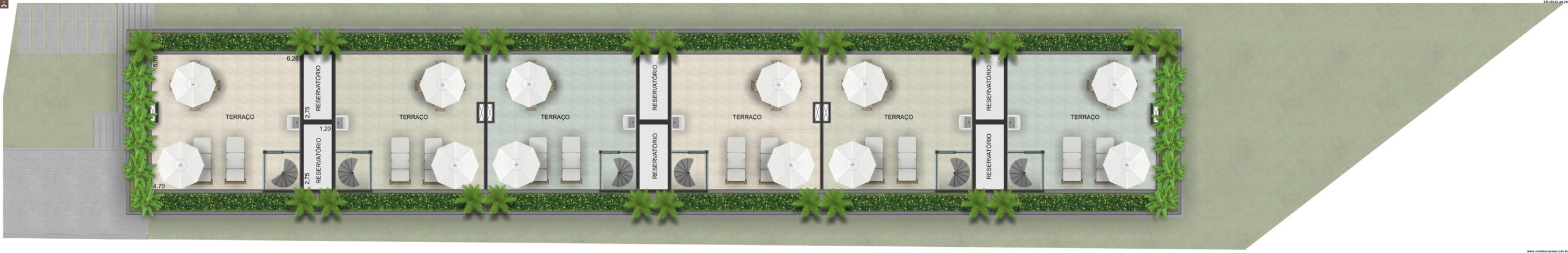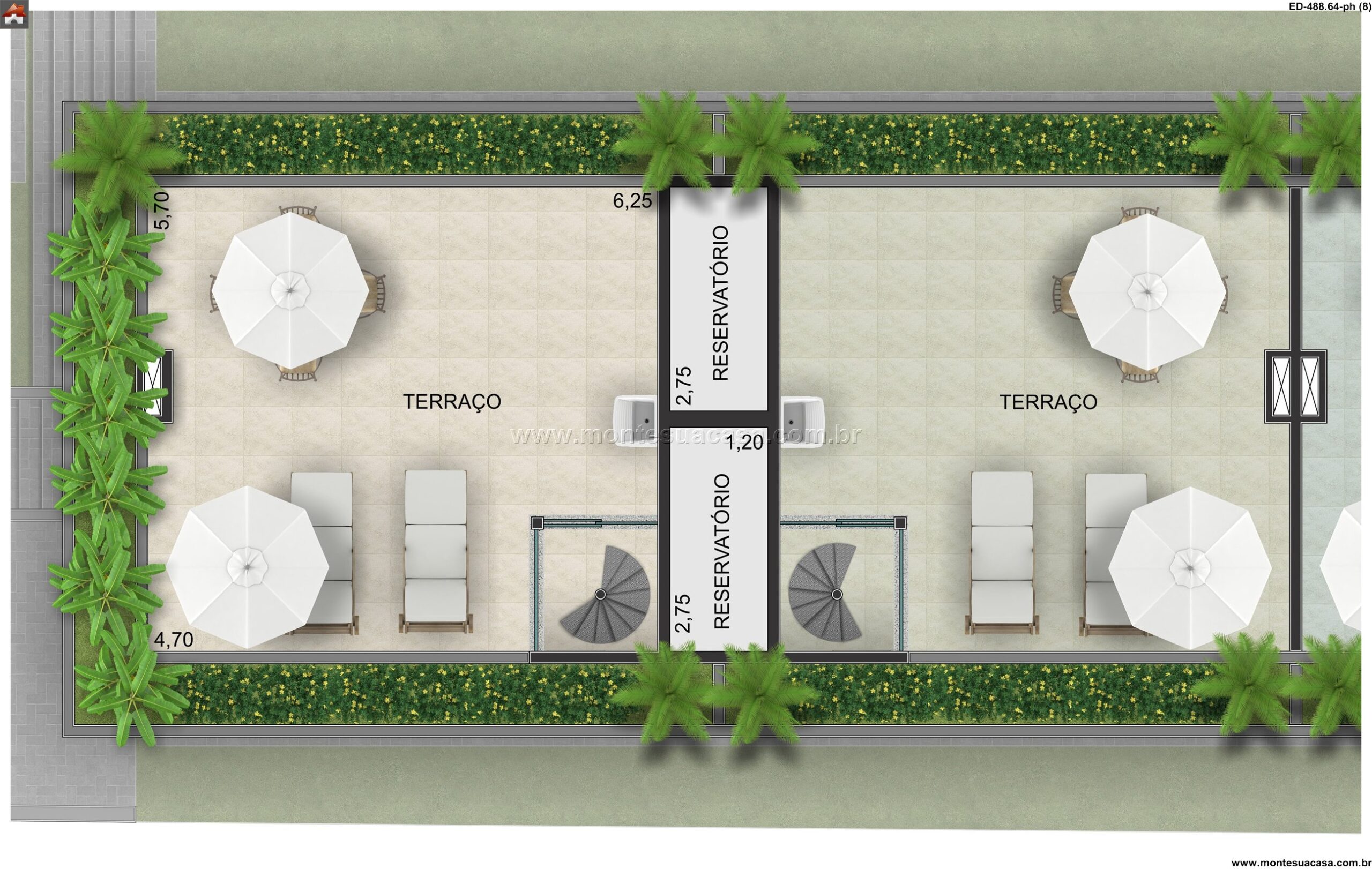 As unidades de dois quartos elevam o conceito de moradia com um diferencial único. Estas plantas incluem uma varanda anexa a um dos quartos, proporcionando um refúgio privativo. A grande atração, porém, é a escada de acesso a um amplo terraço privativo. Este espaço adicional funciona como uma extensão da casa, ideal para entretenimento, criar uma área de jardim ou simplesmente aproveitar o ar livre com total privacidade.