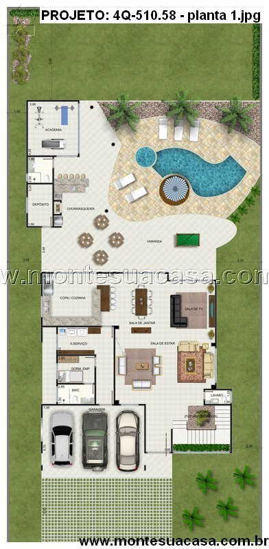 Este projeto arquitetônico de 510.58m² se destaca pela sua distribuição inteligente e fluxo harmonioso entre os ambientes. A planta foi meticulosamente desenvolvida para oferecer uma experiência residencial completa, unindo áreas sociais generosas a uma intimidade acolhedora nos quartos. Cada detalhe reflete um compromisso com a qualidade de vida, priorizando a luminosidade natural, a ventilação cruzada e a integração visual entre os espaços. A arquitetura valoriza linhas contemporâneas que criam uma identidade visual forte e atemporal para a residência.