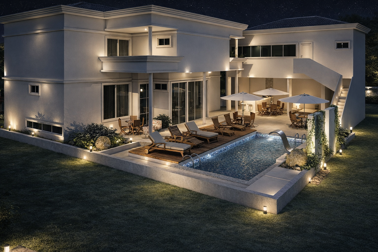 A arquitetura valoriza a iluminação natural e a ventilação cruzada, reduzindo o consumo energético e promovendo bem-estar. Os materiais propostos equilibram estética contemporânea e durabilidade, criando uma residência atemporal que combina luxo discreto com funcionalidade prática. Cada detalhe foi cuidadosamente considerado para transformar este sobrado em um lar completo e acolhedor.