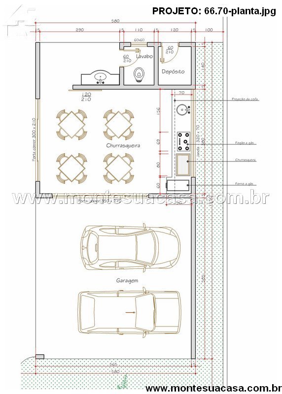 Este projeto arquitetônico de 66.70m² é dedicado exclusivamente ao lazer e entretenimento. A área de lazer foi meticulosamente planejada para oferecer máximo conforto e funcionalidade. Seu design moderno e integrado cria o ambiente perfeito para confraternizações. A churrasqueira se torna o centro das atenções neste espaço gourmet. A garagem anexa proporciona praticidade para os usuários. Este é o complemento ideal para sua residência, focado puramente no bem-estar.