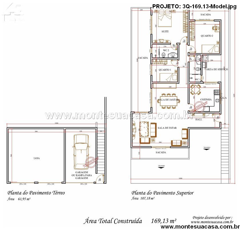 Projeto de Casa com Loja e 3 Quartos – Conforto e Funcionalidade em 169,13 m²