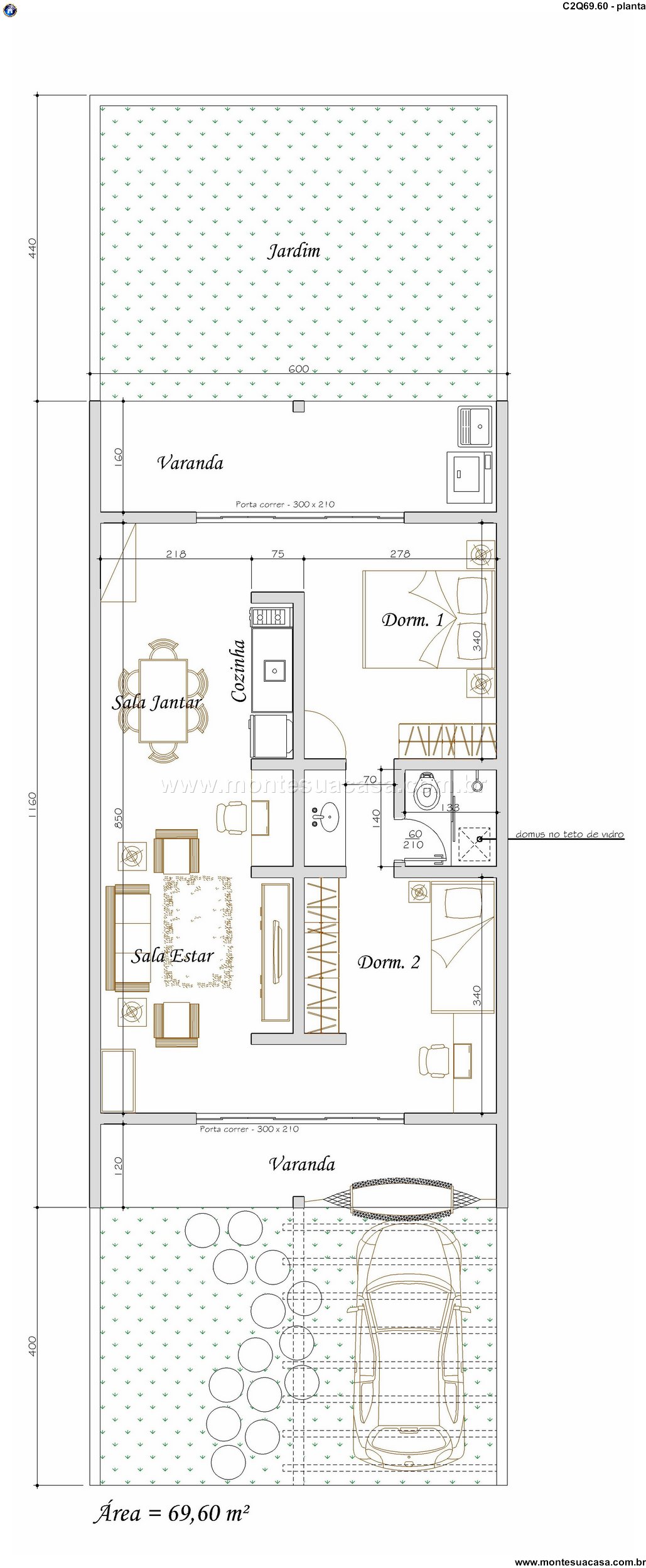 Explore o projeto de uma residência contemporânea de 69.60 m², meticulosamente planejada para oferecer o equilíbrio perfeito entre espaço, luminosidade e praticidade. Este layout demonstra uma notável eficiência na distribuição dos ambientes, criando uma jornada fluida e acolhedora desde a entrada. A concepção prioriza a qualidade de vida, integrando áreas sociais bem dimensionadas e dormitórios privativos. Cada metro quadrado foi otimizado para garantir conforto sem desperdício, resultando em uma moradia que atende perfeitamente às necessidades de um casal ou uma pequena família.