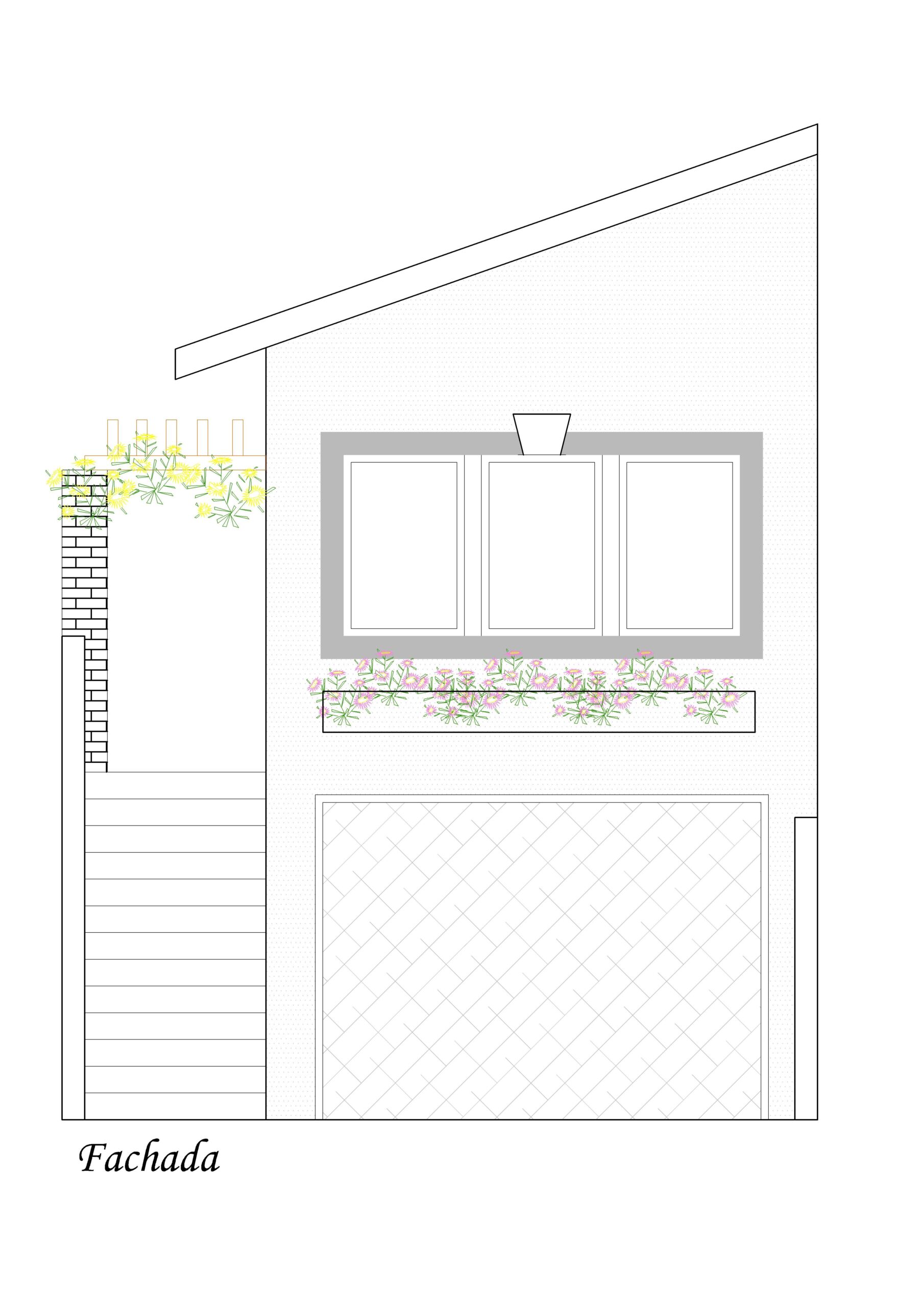 A fachada apresenta uma composição limpa, com cobertura inclinada e jardineiras frontais que trazem leveza ao conjunto. O uso de linhas simples transmite modernidade sem exagero. A implantação respeita o aclive e valoriza o volume superior, criando presença sem tornar a obra cara ou complexa.