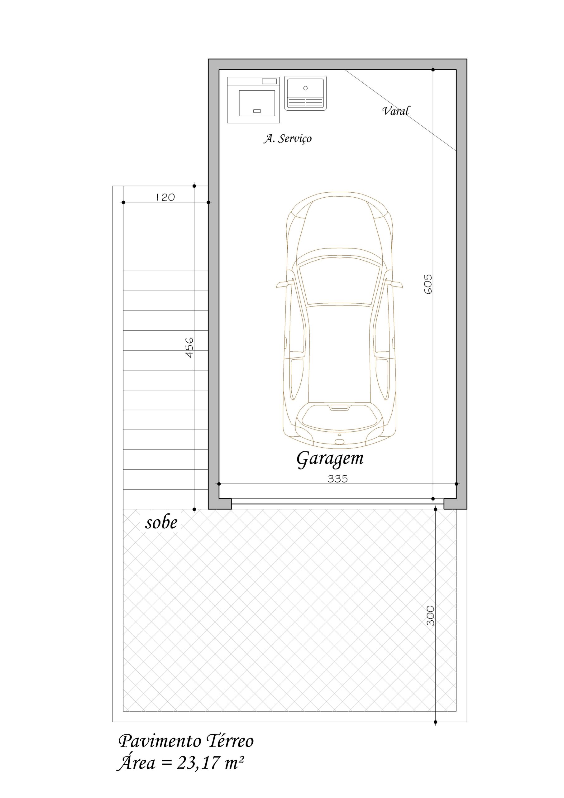 Garagem no Nível da Rua com Área de Serviço