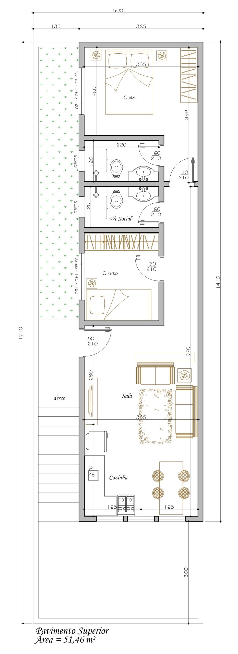 Este projeto é para quem quer simplicidade inteligente: garagem no nível da rua, planta funcional e ótima relação custo-benefício. Nada é supérfluo aqui — tudo tem função, lógica e eficiência.