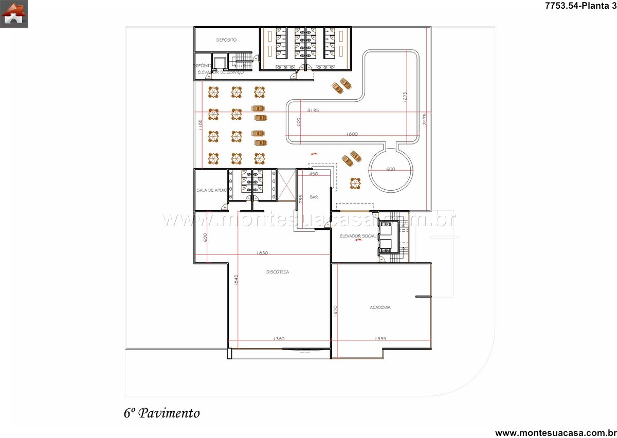 Cobertura com lazer e entretenimento O sexto pavimento, com 783,49m² de área coberta e 610,56m² de área descoberta, oferece um rooftop completo com piscina de design orgânico, espreguiçadeiras, mesas com guarda-sóis e paisagismo tropical. Além disso, conta com uma discoteca de 202m², academia, bar, sala de apoio e depósitos. Este espaço é ideal para eventos, festas e momentos de relaxamento, agregando valor à experiência do hóspede.