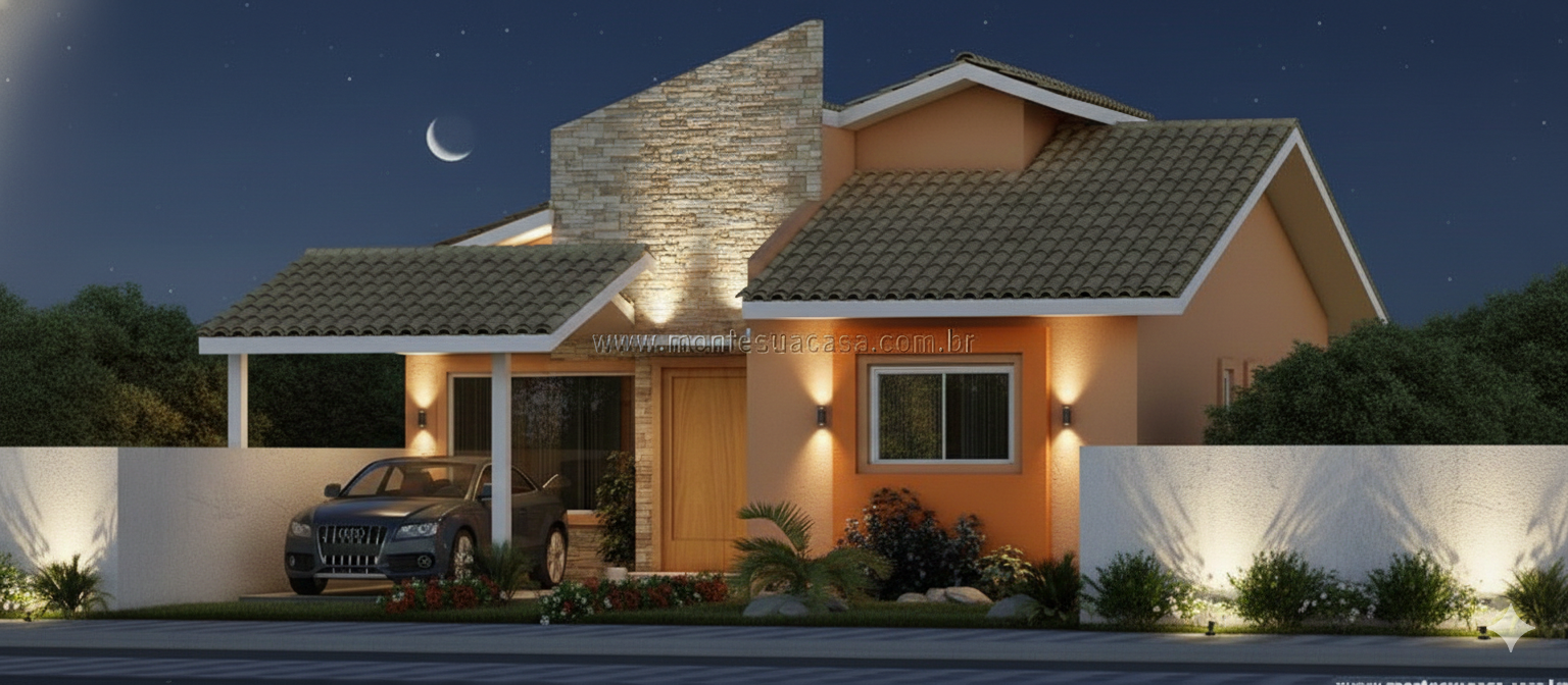 Este projeto de casa térrea com 83m² foi desenvolvido para quem busca conforto, praticidade e um visual contemporâneo. O modelo 2Q-83.02 destaca-se pela fachada charmosa com revestimento em pedra natural e telhado de múltiplas águas, valorizando o design e proporcionando excelente ventilação interna.