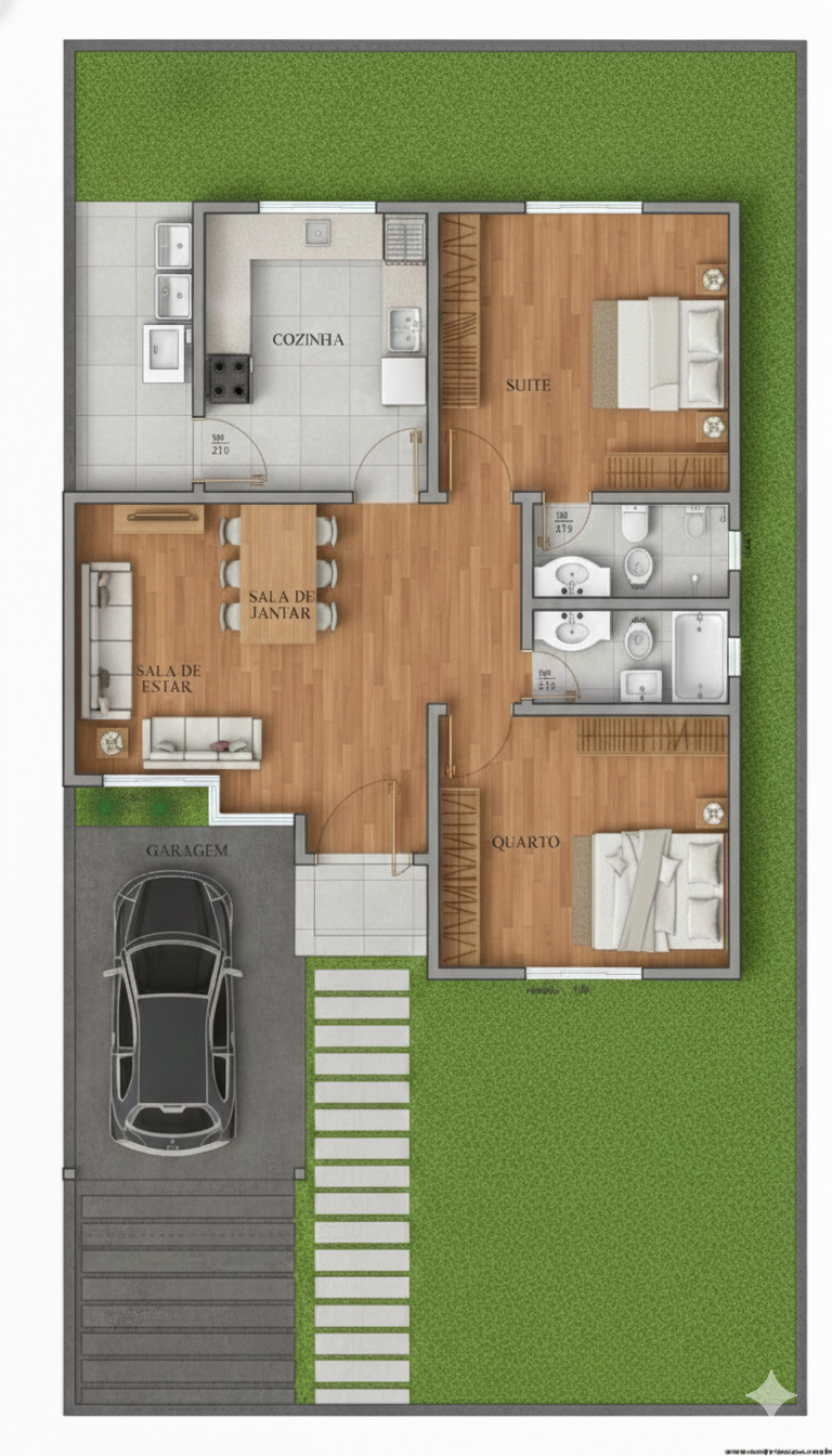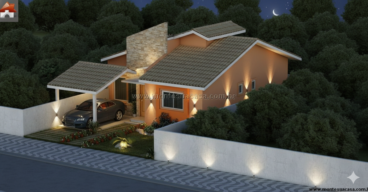Com uma planta bem distribuída, o projeto aproveita cada metro quadrado de forma funcional, tornando-se uma ótima escolha tanto para terrenos urbanos quanto em condomínios residenciais.