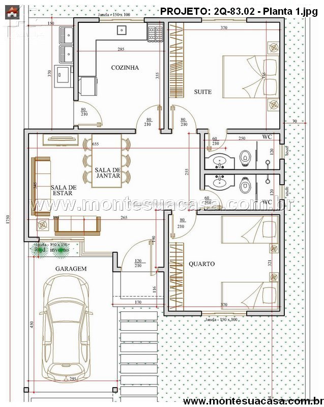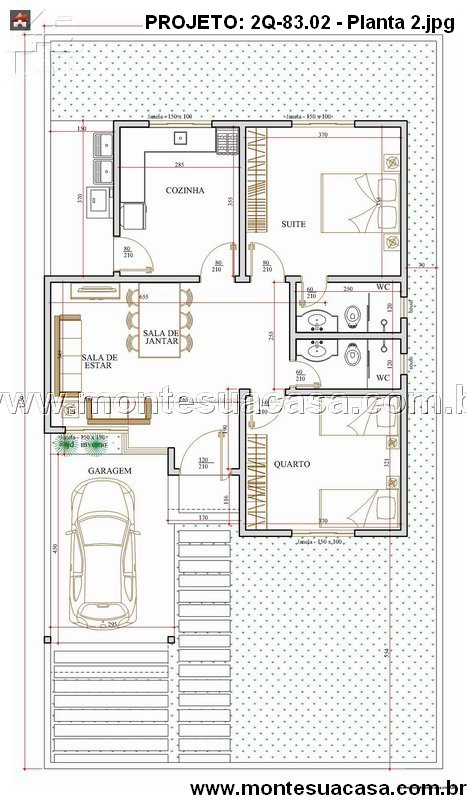 O projeto 2Q-83.02 é uma excelente opção para famílias que buscam um lar moderno, funcional e de fácil manutenção. Pode ser construído em terrenos a partir de 10 metros de largura por 20 metros de profundidade, oferecendo ótimo aproveitamento do espaço e excelente custo-benefício.