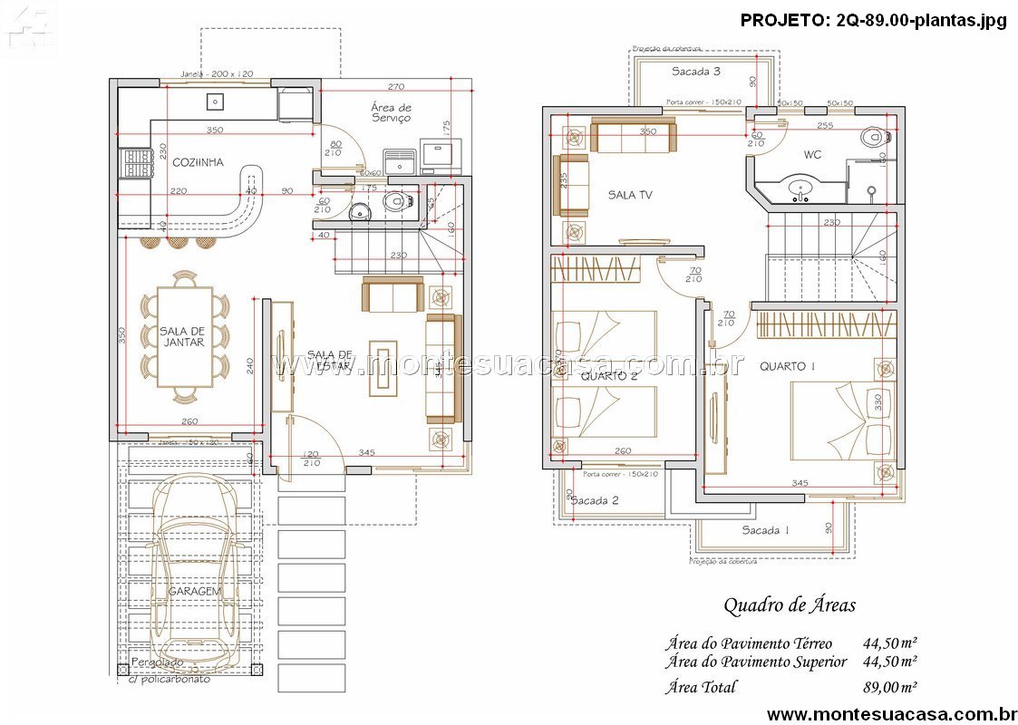Projeto de Sobrado Moderno com 2 Quartos e 89,01m²