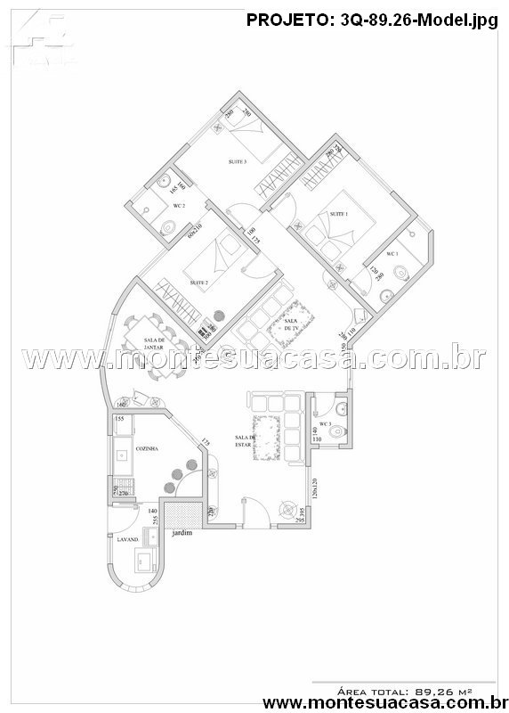 O projeto de casa térrea com 89,26 m² oferece uma planta funcional e elegante, pensada para famílias que valorizam conforto e praticidade no dia a dia. A distribuição inteligente dos ambientes garante fluidez entre as áreas sociais e privacidade nas áreas íntimas.