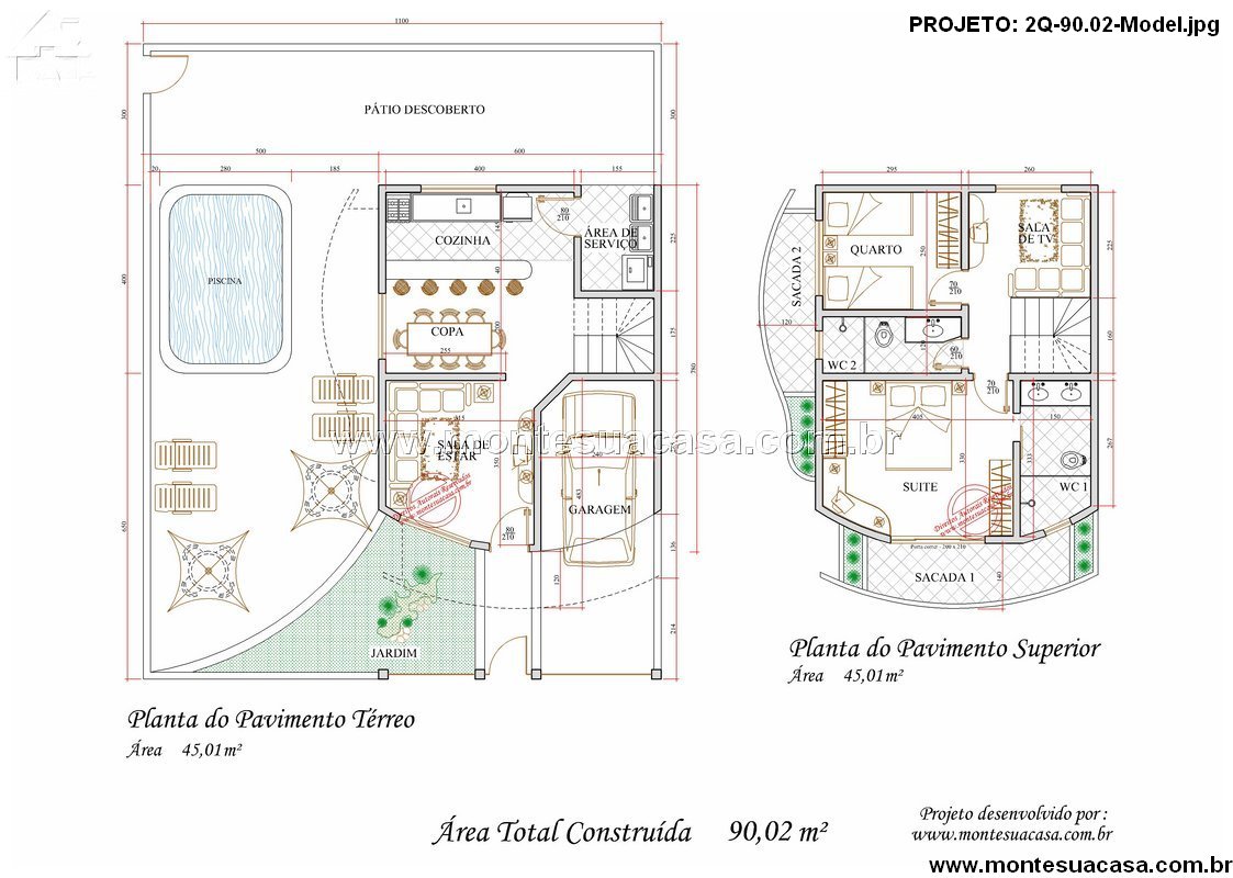 Projeto de Sobrado Moderno com 2 Quartos e Piscina – 90,02m²