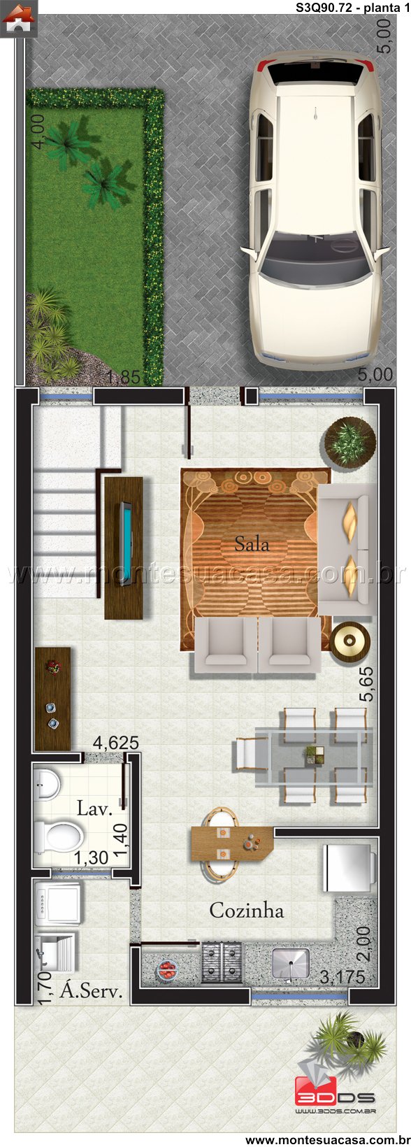 Este sobrado de 90,72m² foi desenvolvido para quem precisa de um projeto bem resolvido, com estética contemporânea e distribuição eficiente dos ambientes. A fachada apresenta linhas retas, elementos horizontais marcantes e um jogo de volumes que reforça a sensação de modernidade. O visual limpo permite fácil adaptação a conjuntos com várias unidades geminadas, reduzindo custos sem perder identidade arquitetônica.