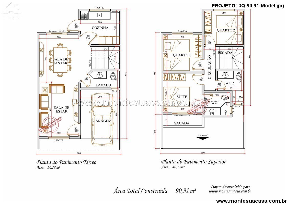 Com sua distribuição equilibrada entre áreas sociais e íntimas, o Projeto 3Q-90.91 é uma excelente escolha para quem busca um sobrado funcional, esteticamente moderno e econômico.