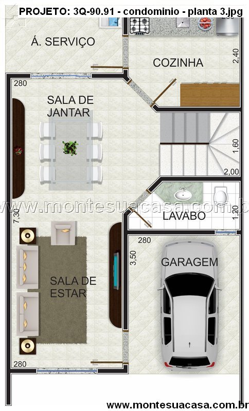 Cada unidade habitacional possui três dormitórios, incluindo uma suíte com sacada, sala de estar, sala de jantar integrada à cozinha, lavabo, banheiro social, área de serviço e garagem privativa. O layout foi cuidadosamente desenvolvido para garantir ótima ventilação, iluminação natural e um excelente aproveitamento dos espaços.